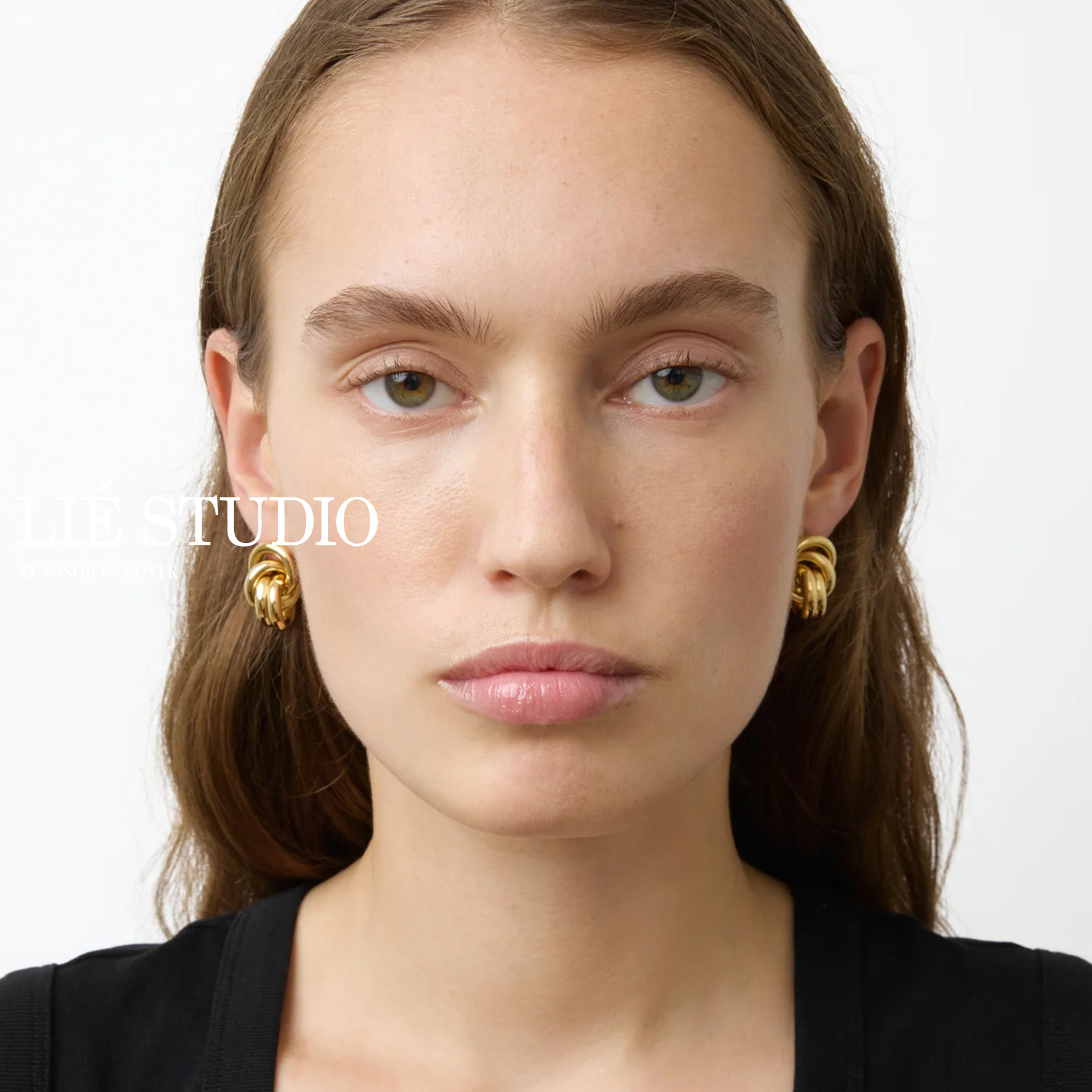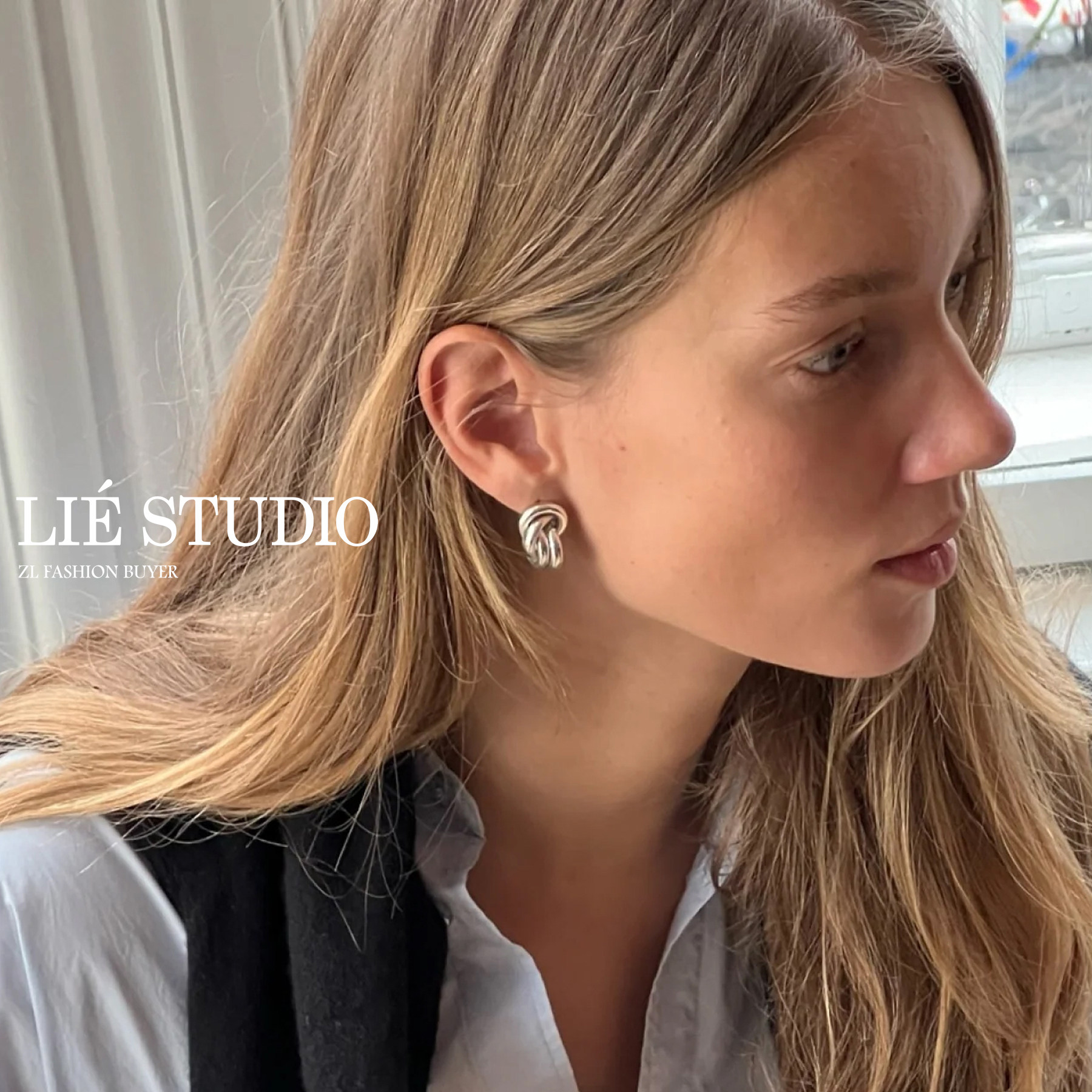 现货Lie Studio丹麦立体结扣圆环交叉极简风高级纯银耳环官方授权