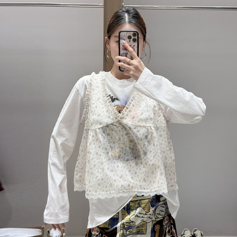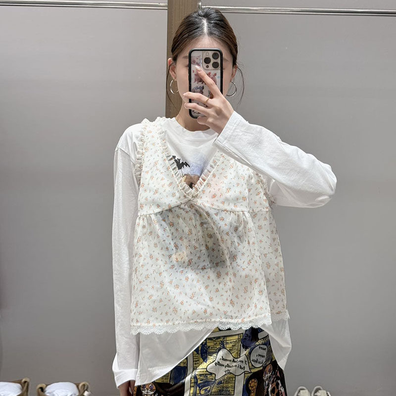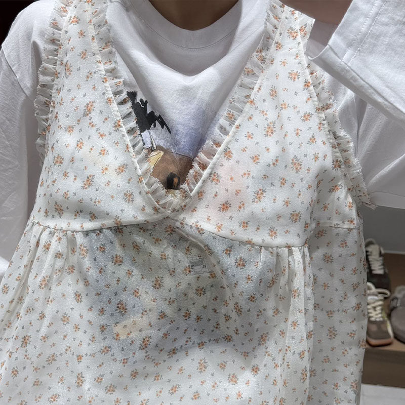 M |现货询价 26设计师品牌春季新款小碎花V领蕾丝边吊带