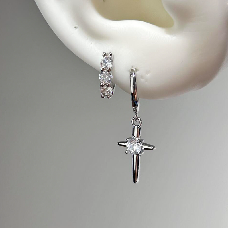 爆闪粉色闪锆十字架星芒耳扣女甜酷风清冷感双耳洞耳环不掉色耳钉