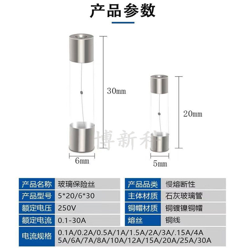 慢熔玻璃保险丝管5x20延时保险丝管微波炉保险管T2AT3AT5AT8AT10A