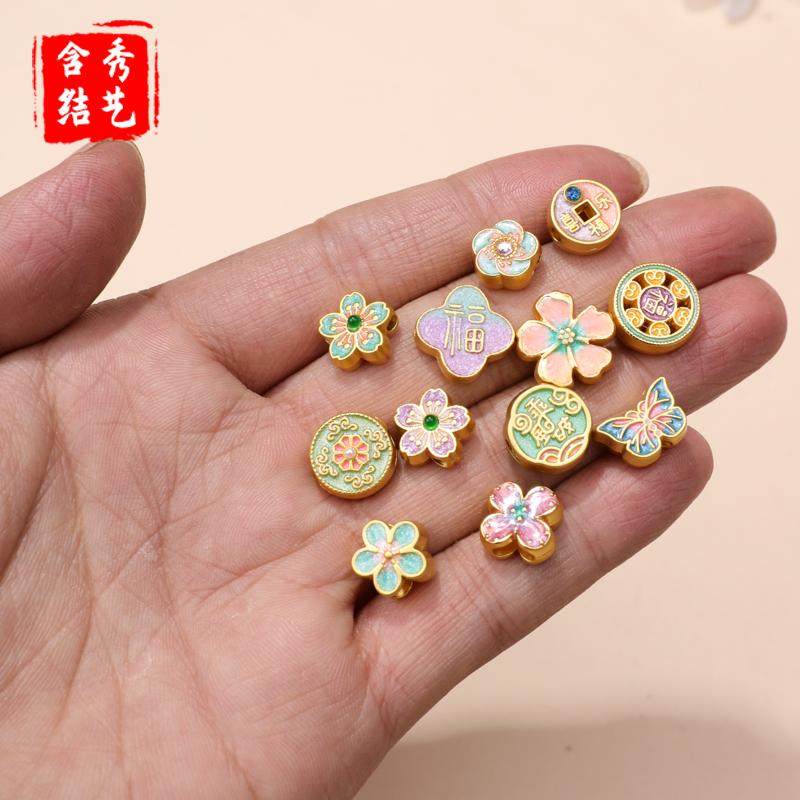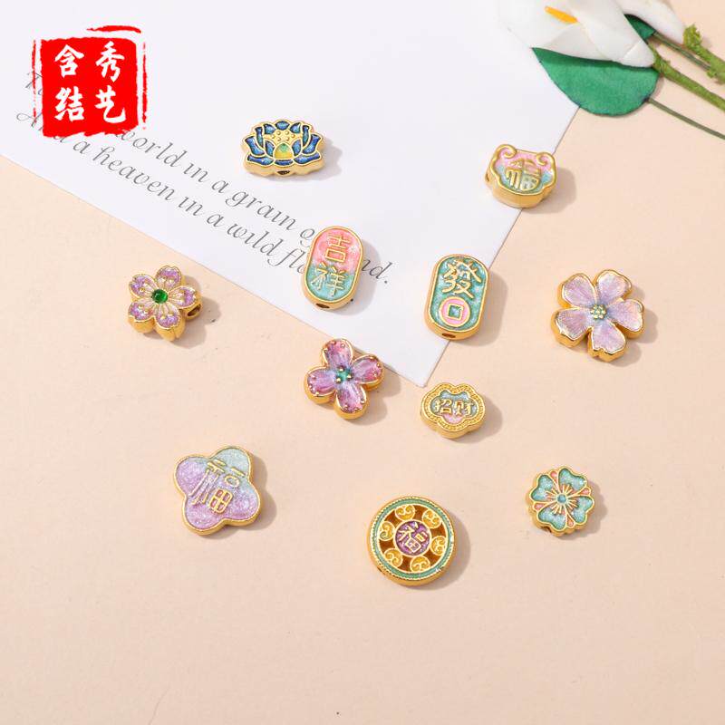 古法沙金福字隔珠平安花朵串珠手工制作项链锦鲤葫芦水晶diy配件