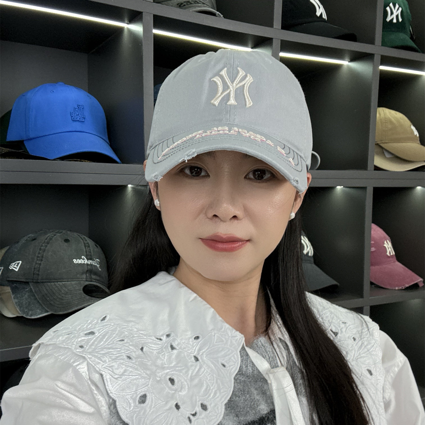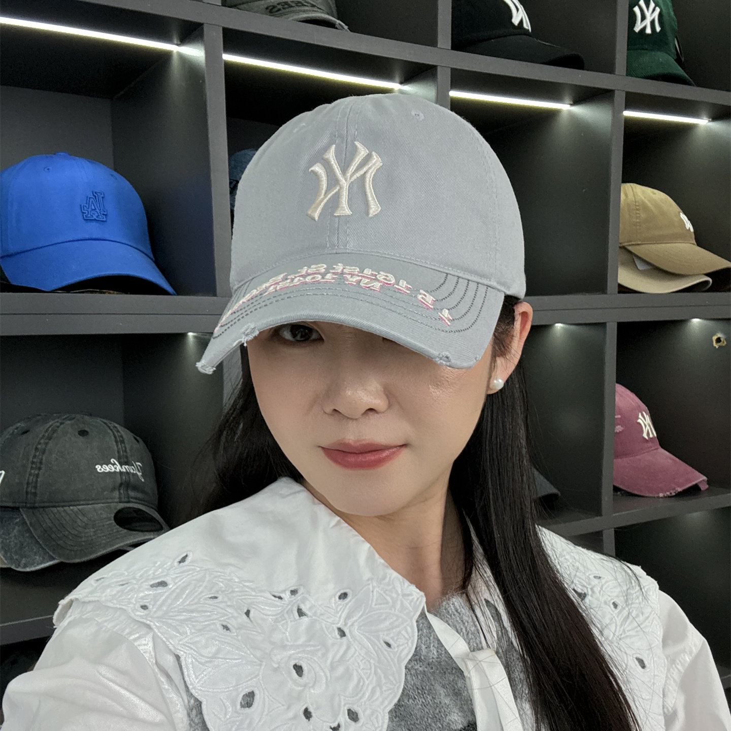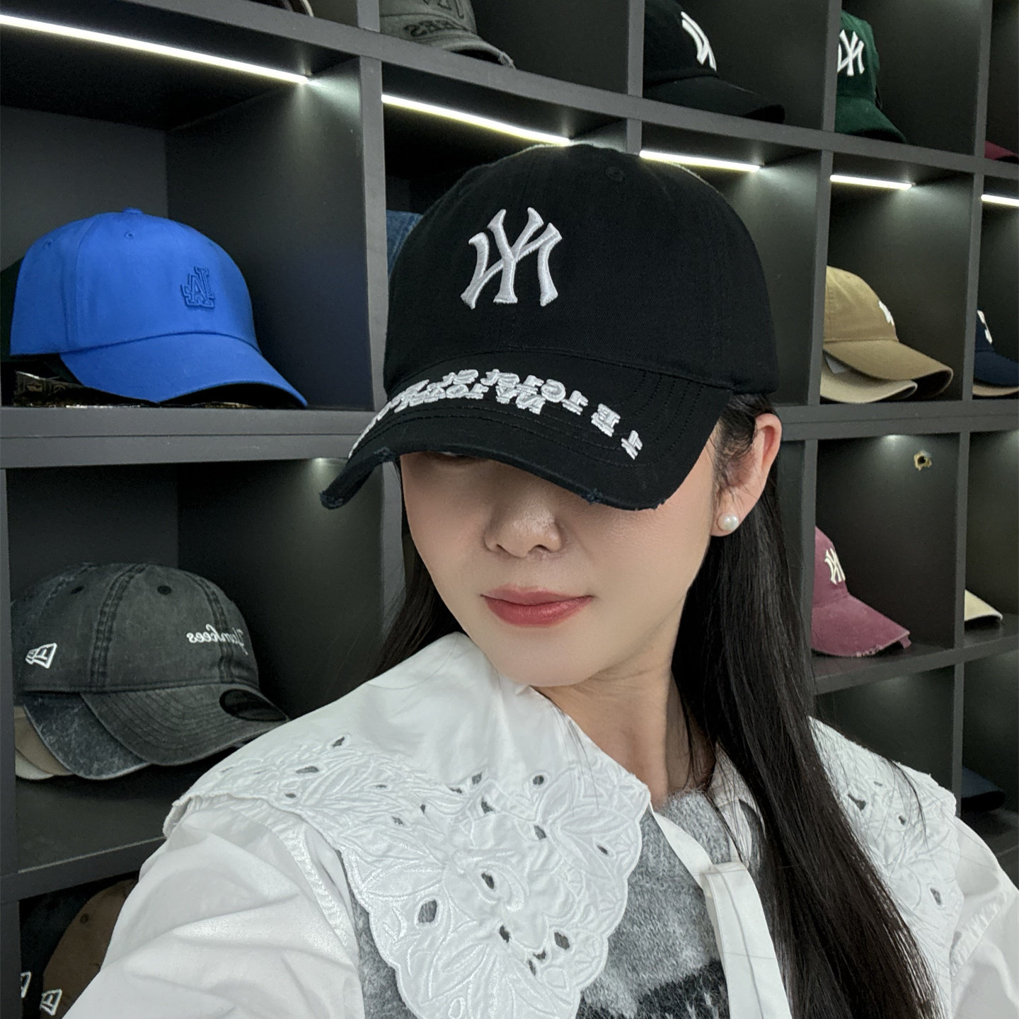 MLB帽子韩国正品男女情侣破洞休闲运动NY软顶棒球帽新款鸭舌帽