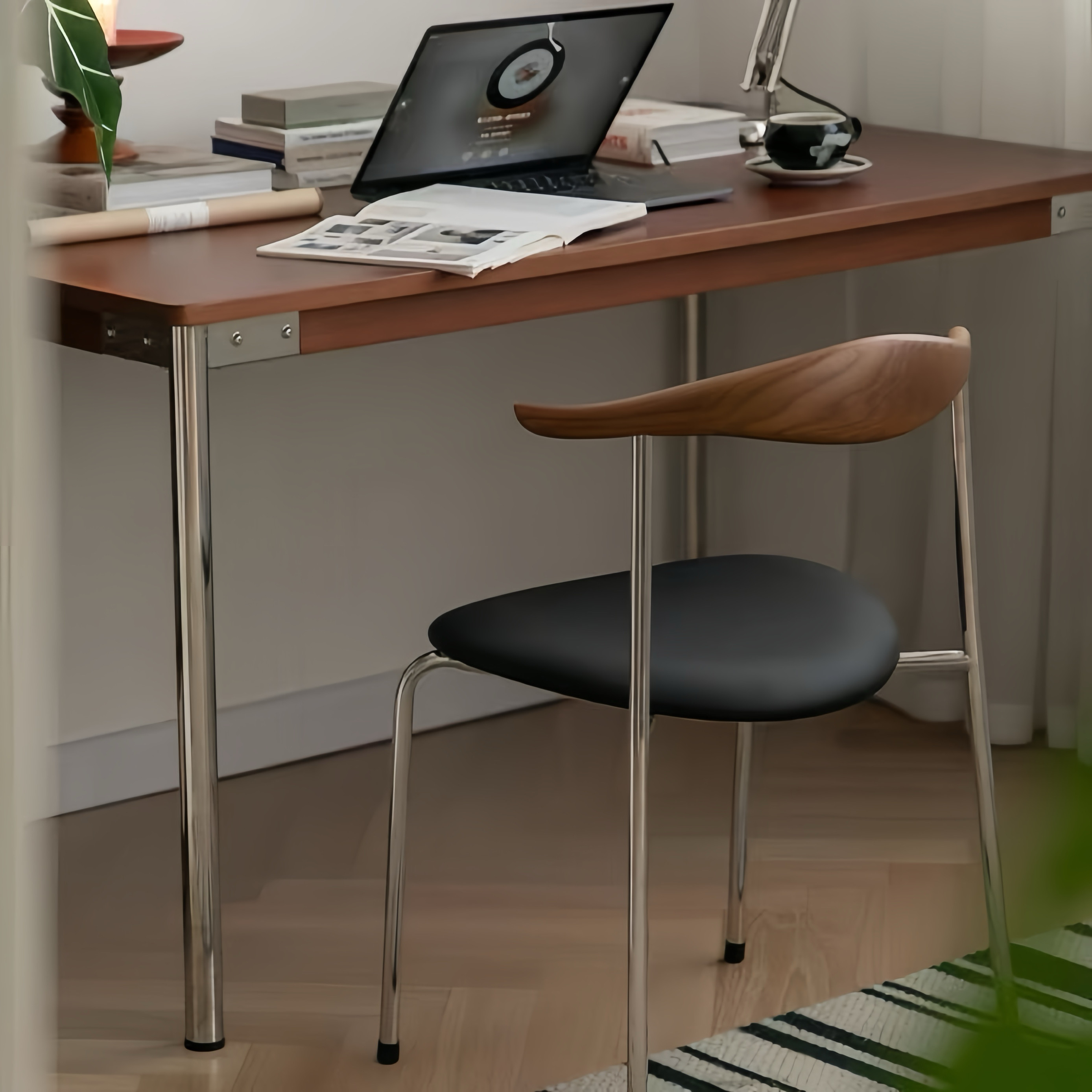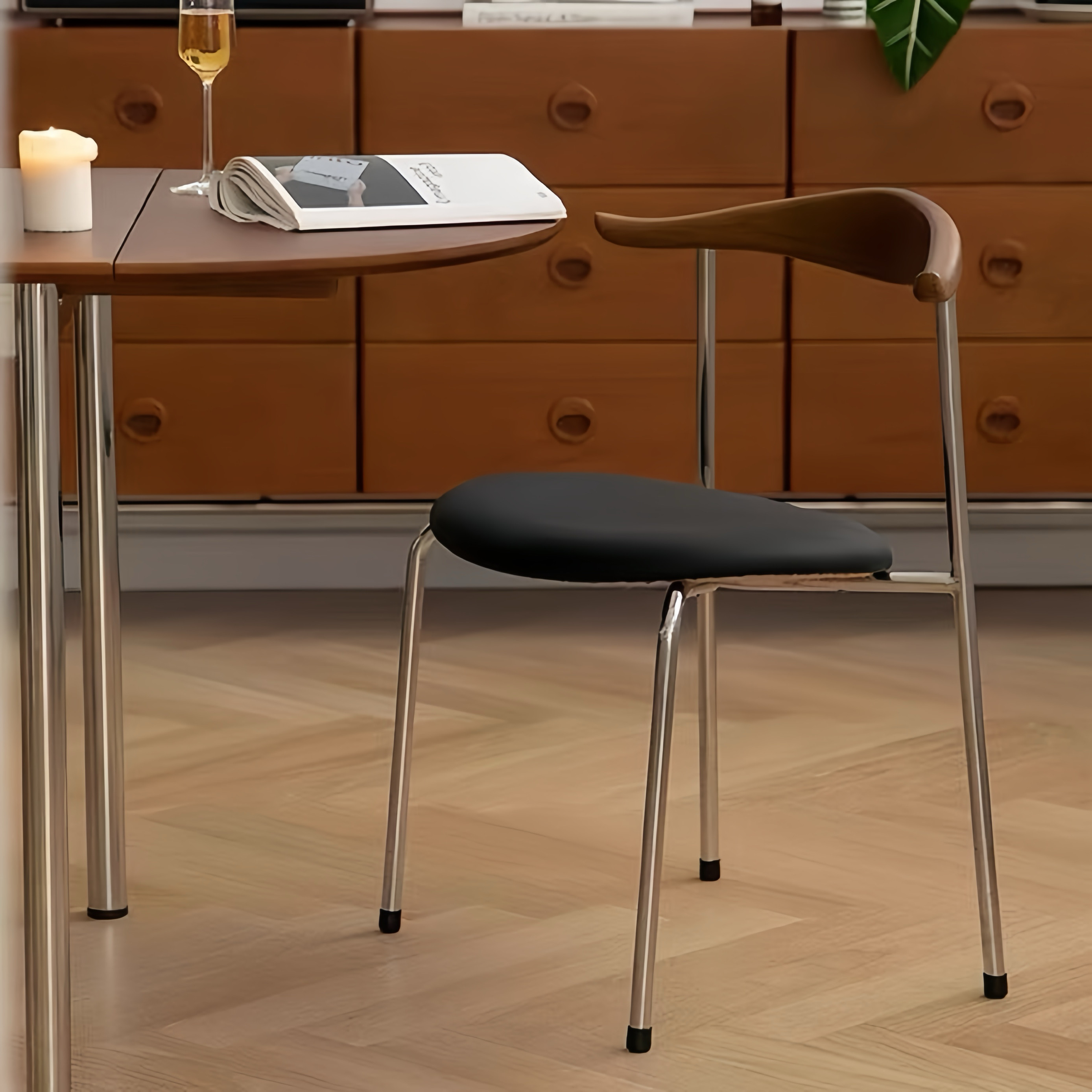 北欧家用餐椅可叠放实木靠背椅设计师复古羊角椅休闲化妆椅咖啡厅
