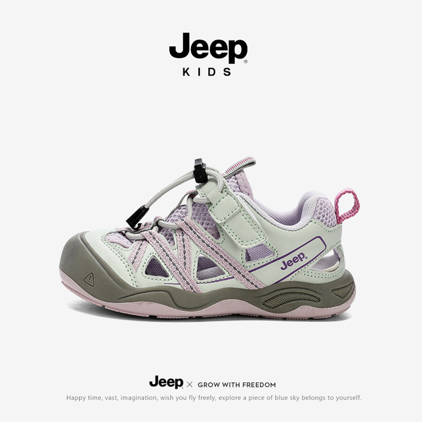 jeep女童户外防滑凉鞋徒步登山儿童包头沙滩鞋软底男童休闲登山鞋