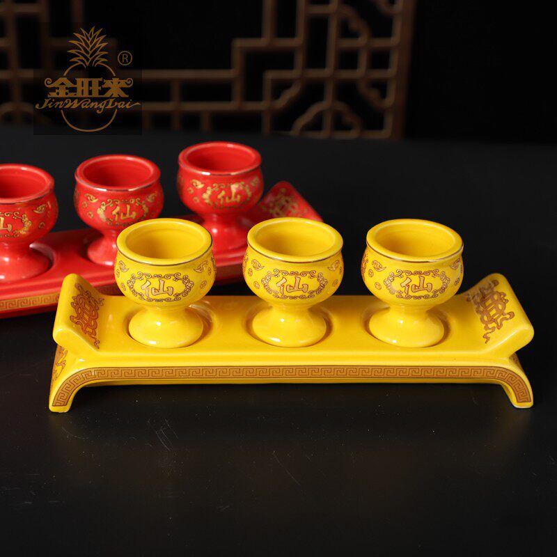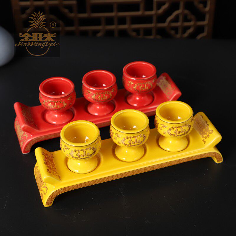 财神供杯供佛杯仙家杯 佛酒杯元宝陶瓷描招财进宝供杯贡杯包邮