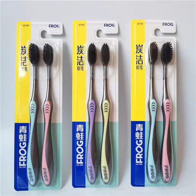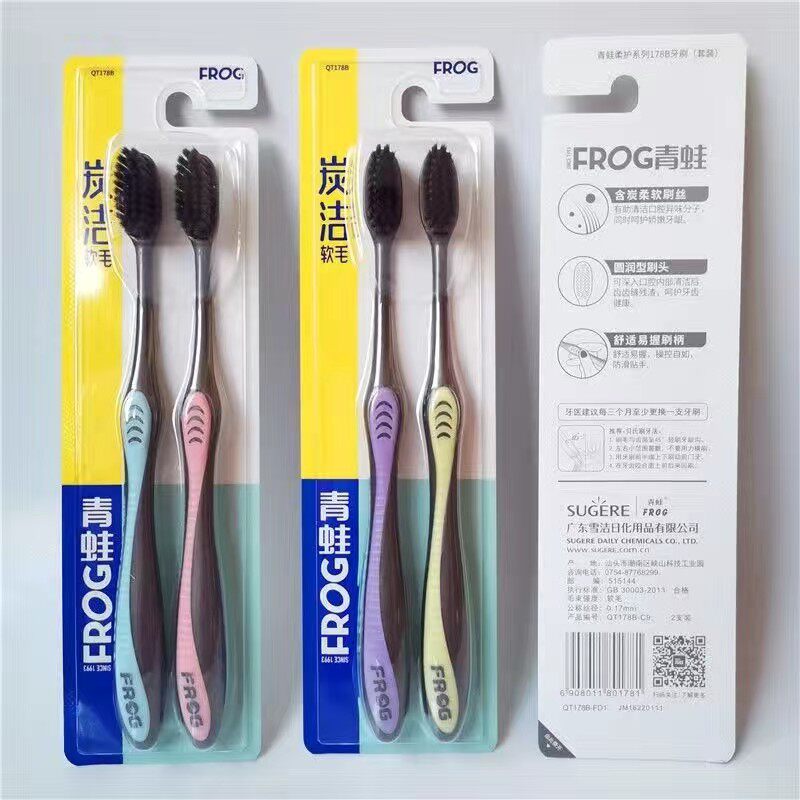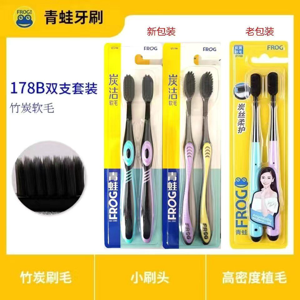 青蛙牙刷套装情侣软毛成人款柔软竹炭家用男女正品家庭装细毛178B