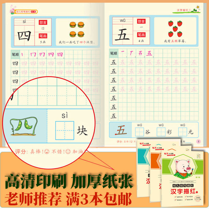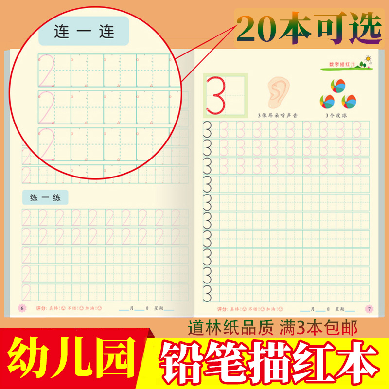 数字描红本幼儿园初学者拼音汉字笔顺全套儿童学前铅笔练字帖1-10
