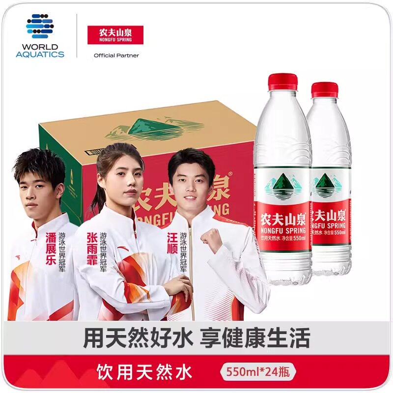 农夫山泉饮用天然水550ml*24瓶整箱商务会议办公用水弱碱性红盖水