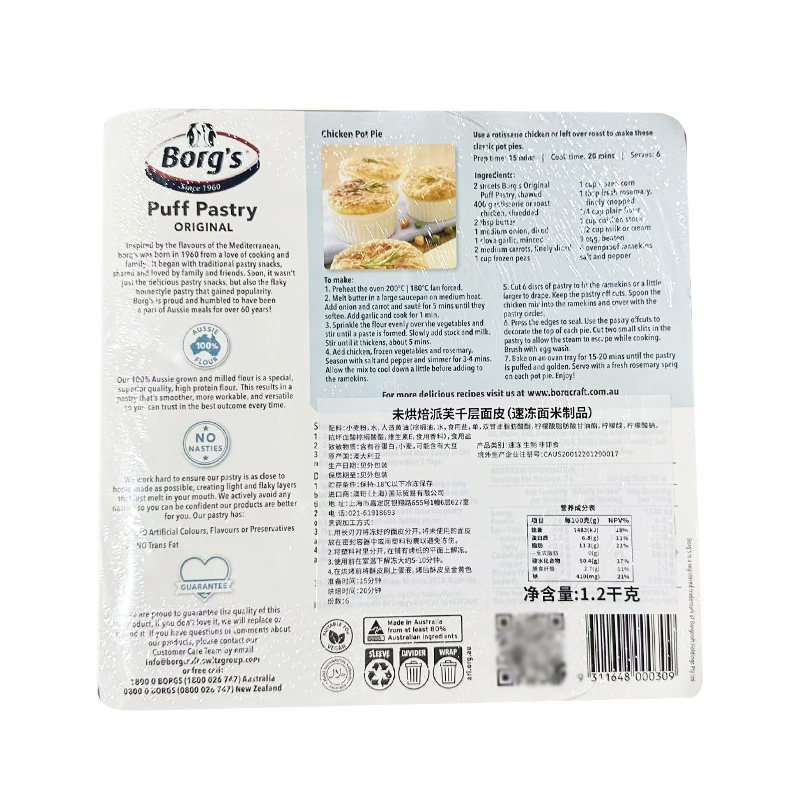 澳大利亚进口派芙千层面皮1.2kg烘焙薄起酥皮Borgs 7 Puff Pastry