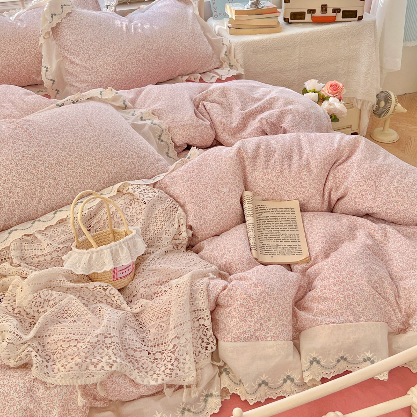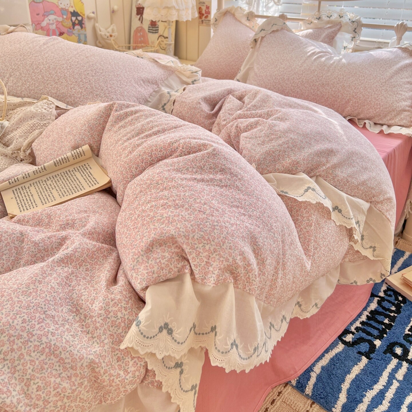 2026新款纯棉全棉双层纱刺绣花边款四件套