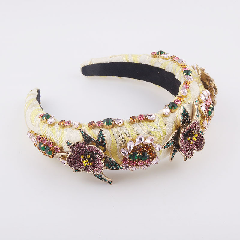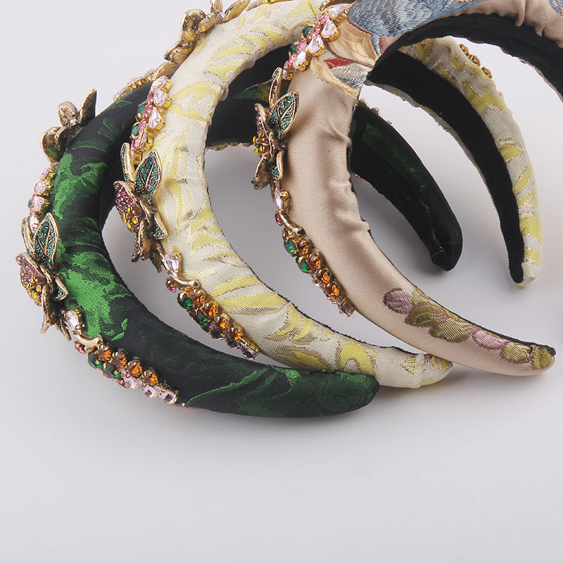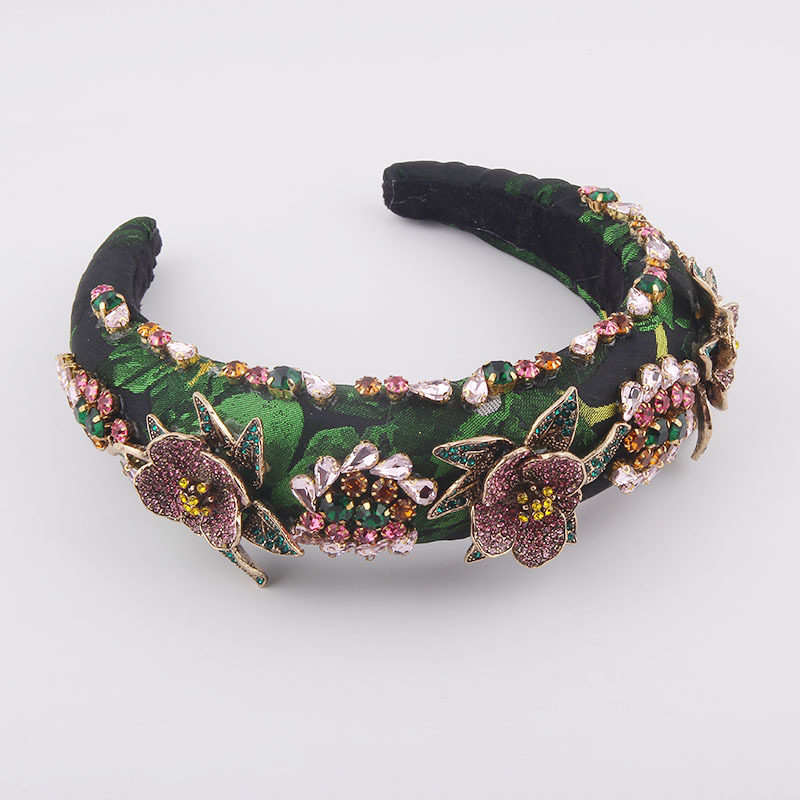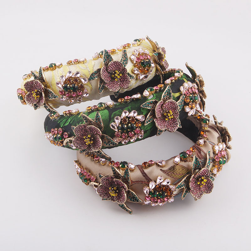 新款欧美风巴洛克海绵花布镶钻花卉发箍女士宽边华丽个性舞会发饰