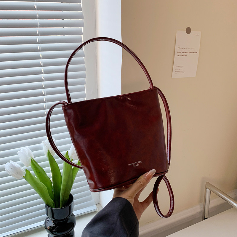 FEO极简风简约大气斜跨包背包时尚百搭日常通勤纯色手提包水桶包