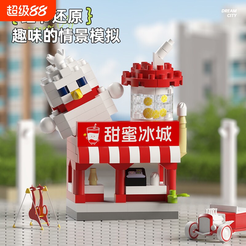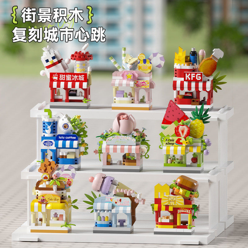 2025新品梦想小店街景建筑模型摆件益智积木拼装玩具礼物节日蛋糕