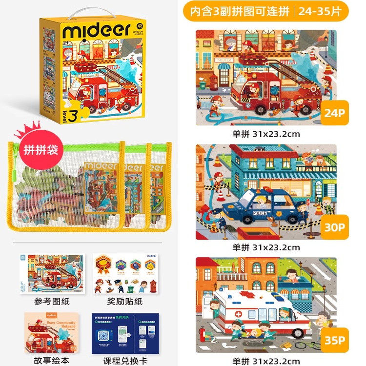 mideer弥鹿儿童进阶拼图大块男孩女孩早教启蒙益智玩具3-4-5-6岁