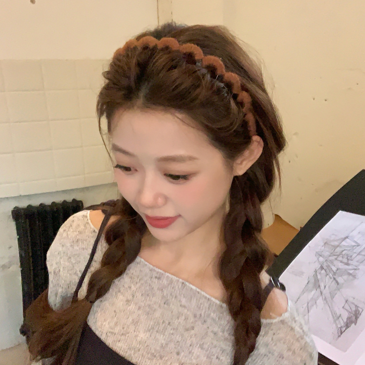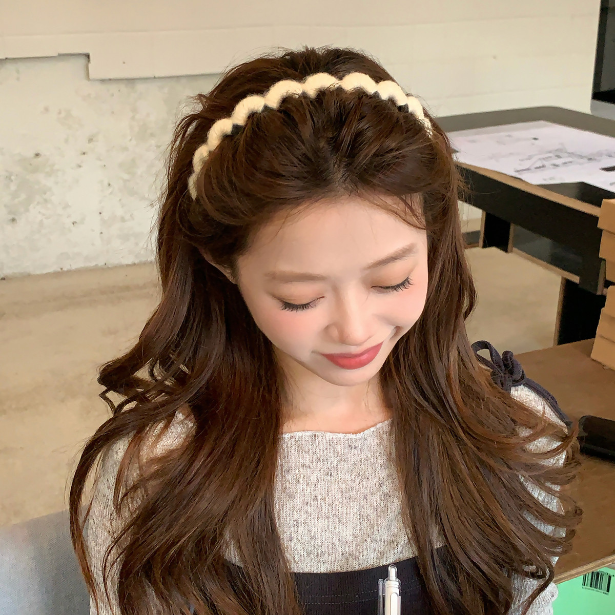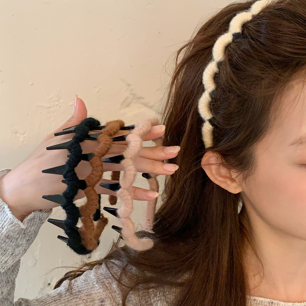 编织毛线带齿波浪发箍不卡头蓬松高颅顶纹理头箍防滑压发发卡发饰