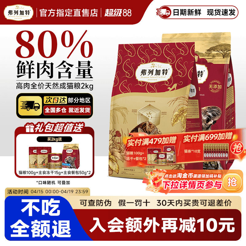 弗列加特猫粮鲜肉成猫粮试吃装美短专用奶糕幼猫粮费列加特猫粮