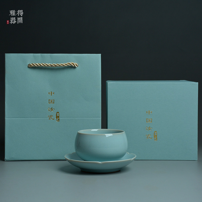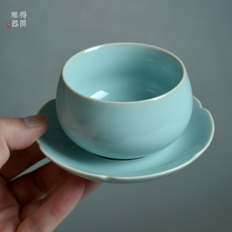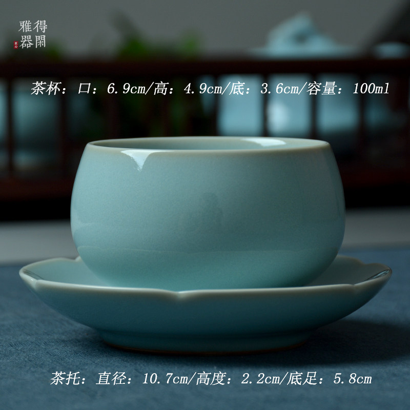 得闲雅器汝瓷天青不开片圆满茶杯套组手工品茗杯主人茶杯汝州汝窑