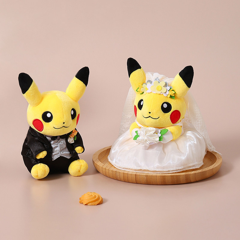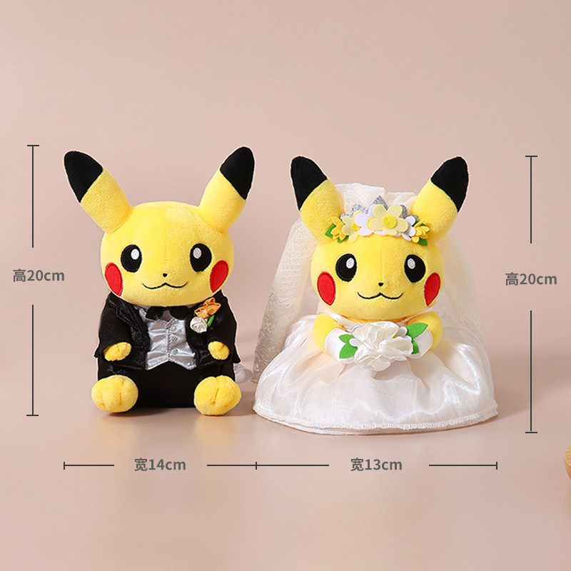 日本宝可梦神奇宝贝正版西式结婚皮卡丘情侣公仔玩偶娃娃毛绒玩具