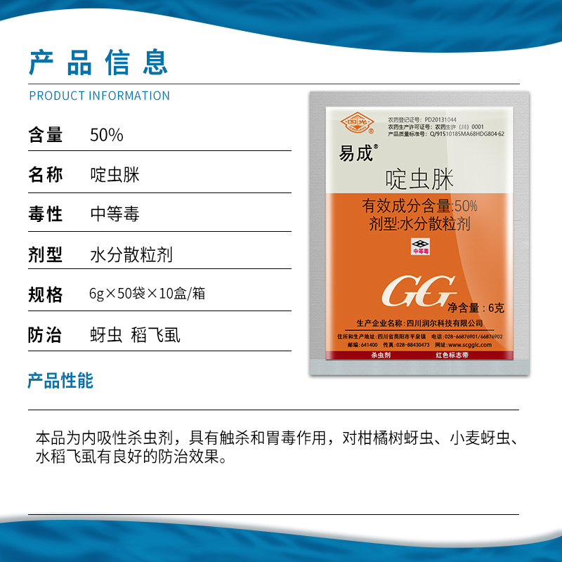 国光易成50%啶虫脒小麦柑橘蚜虫腻虫蜜虫水稻稻飞虱农药杀虫剂6g