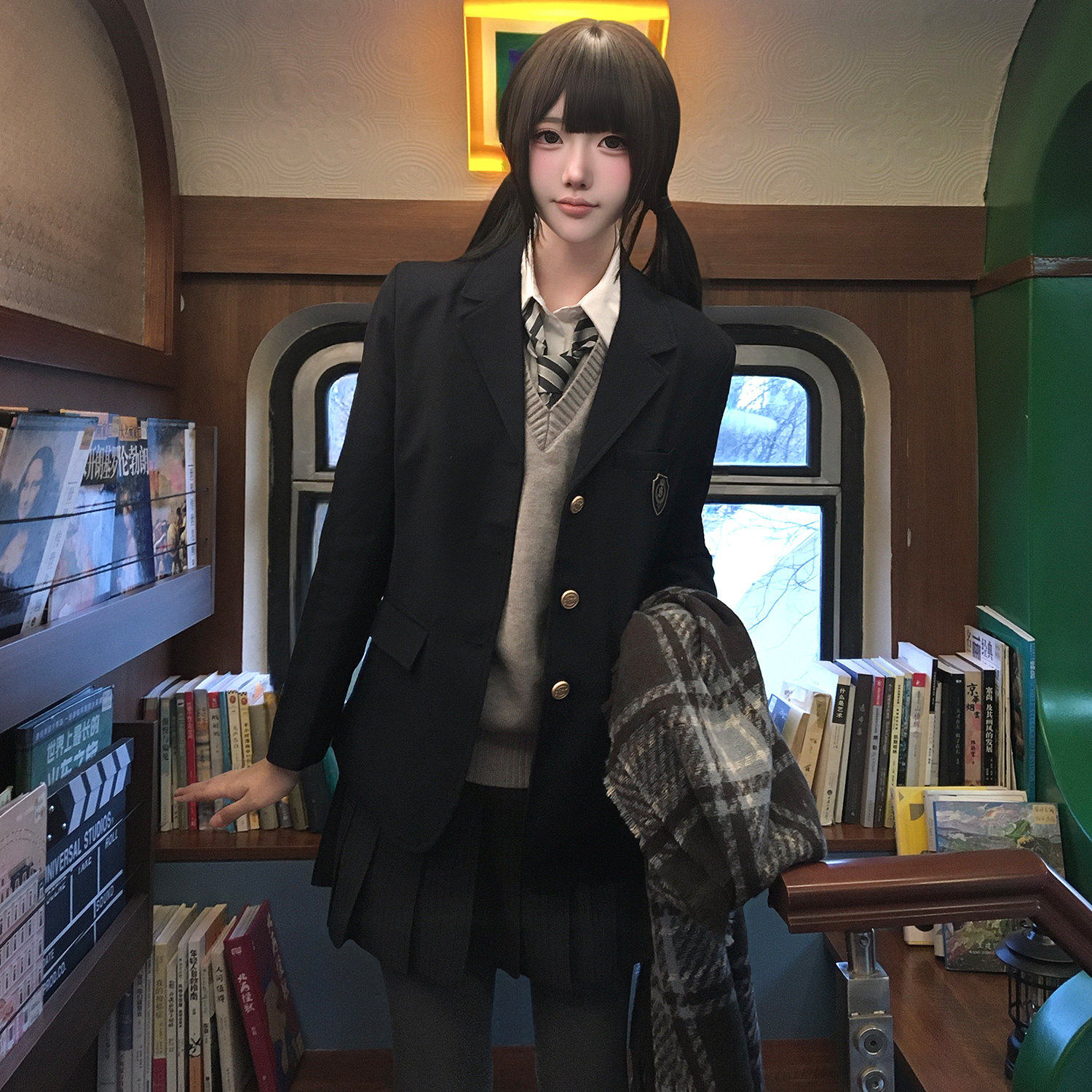 花千猪新品 月下弦格裙 jk制服校供感a字型刺绣款深灰格百搭jk裙