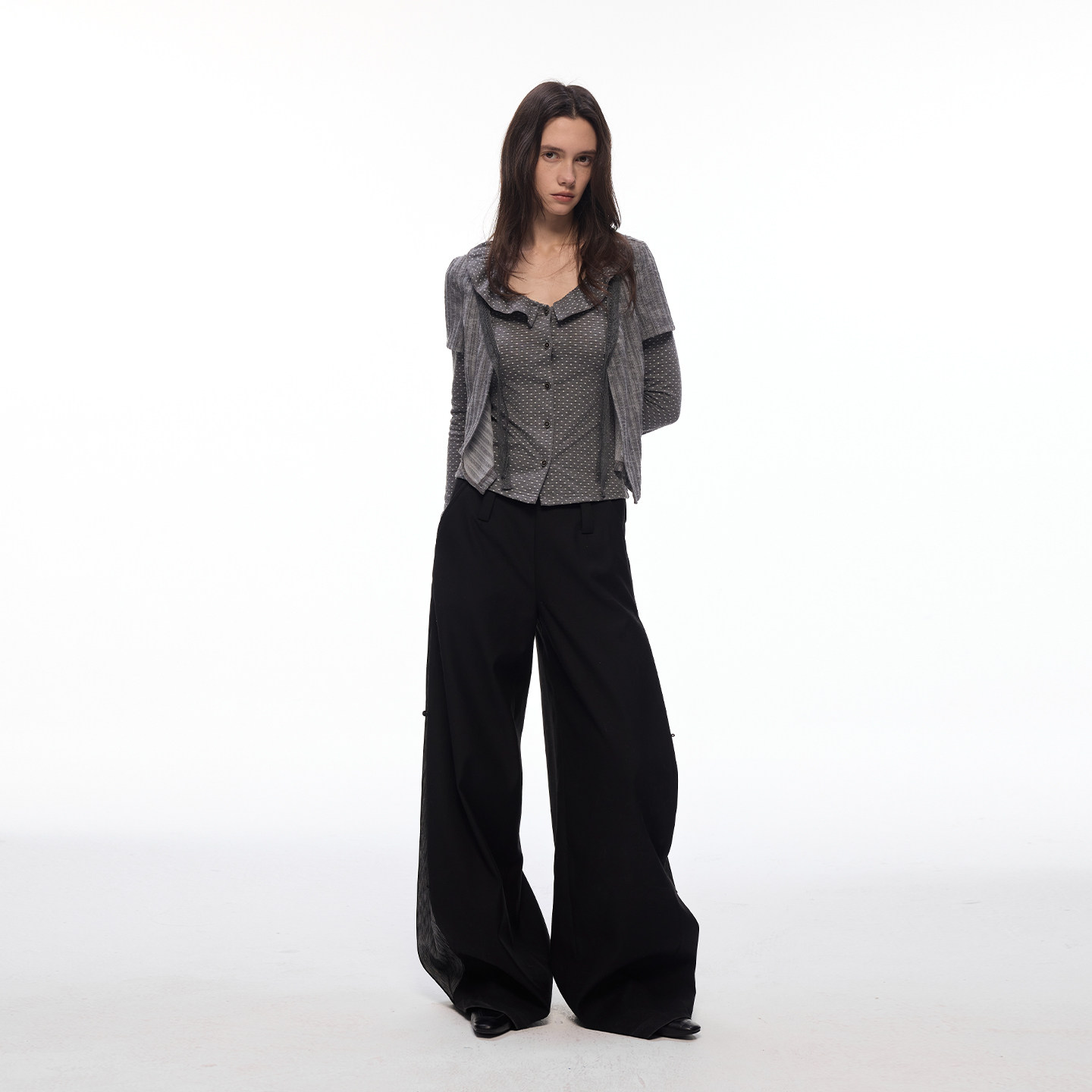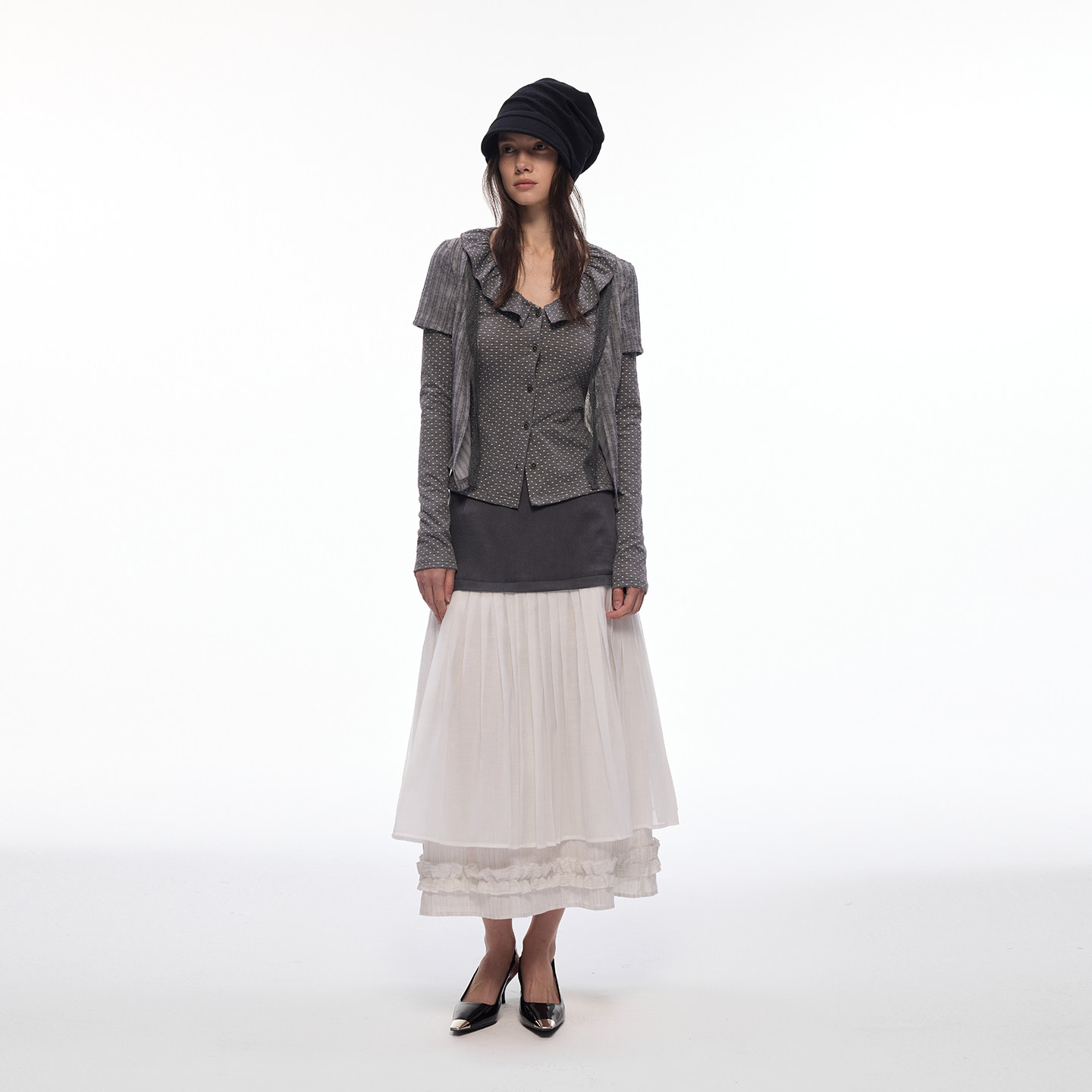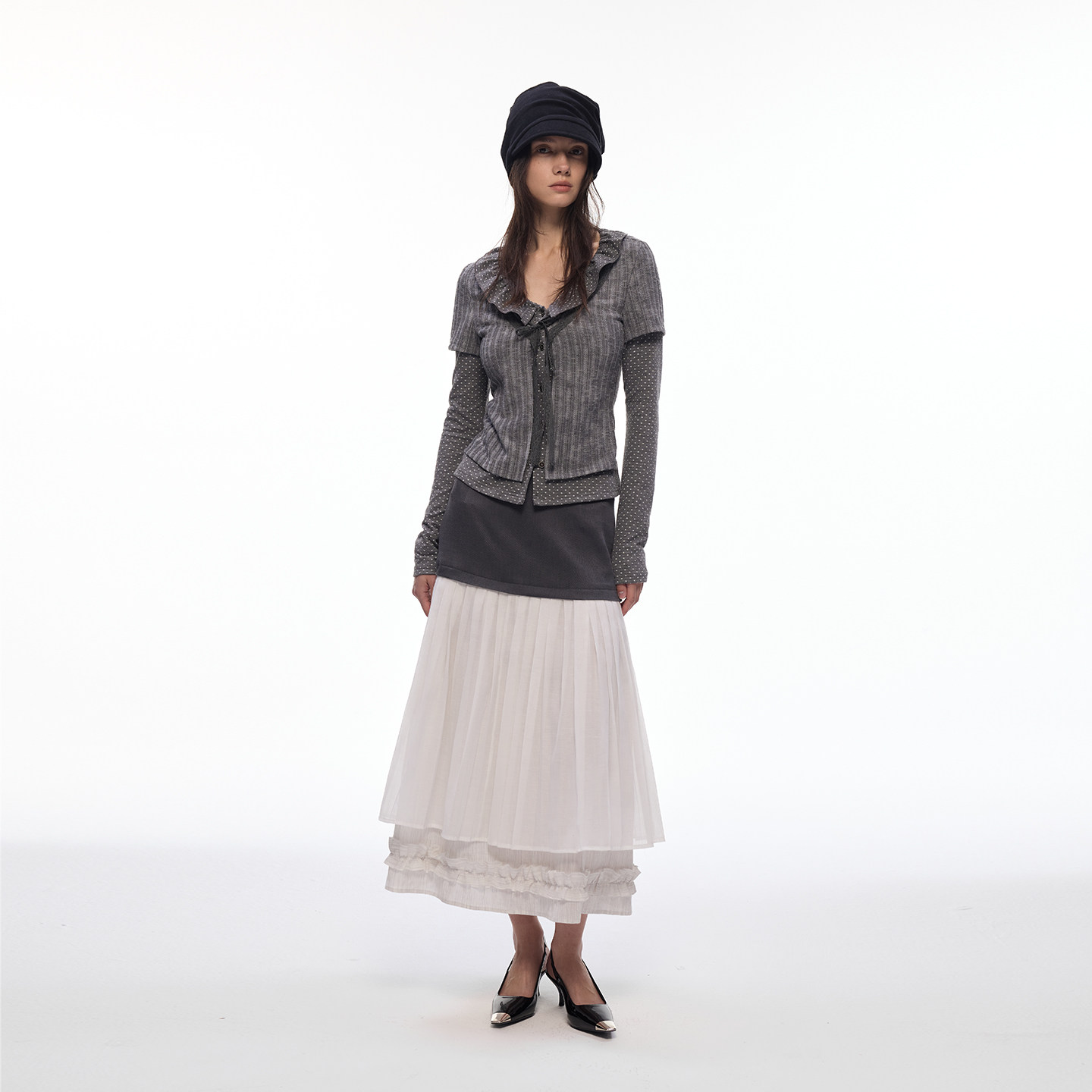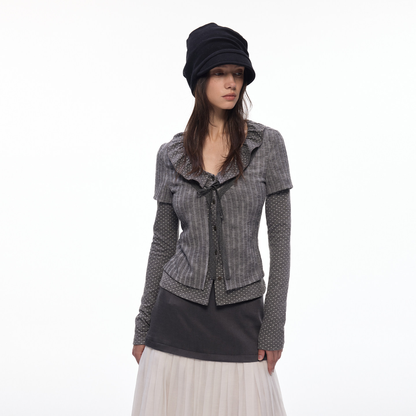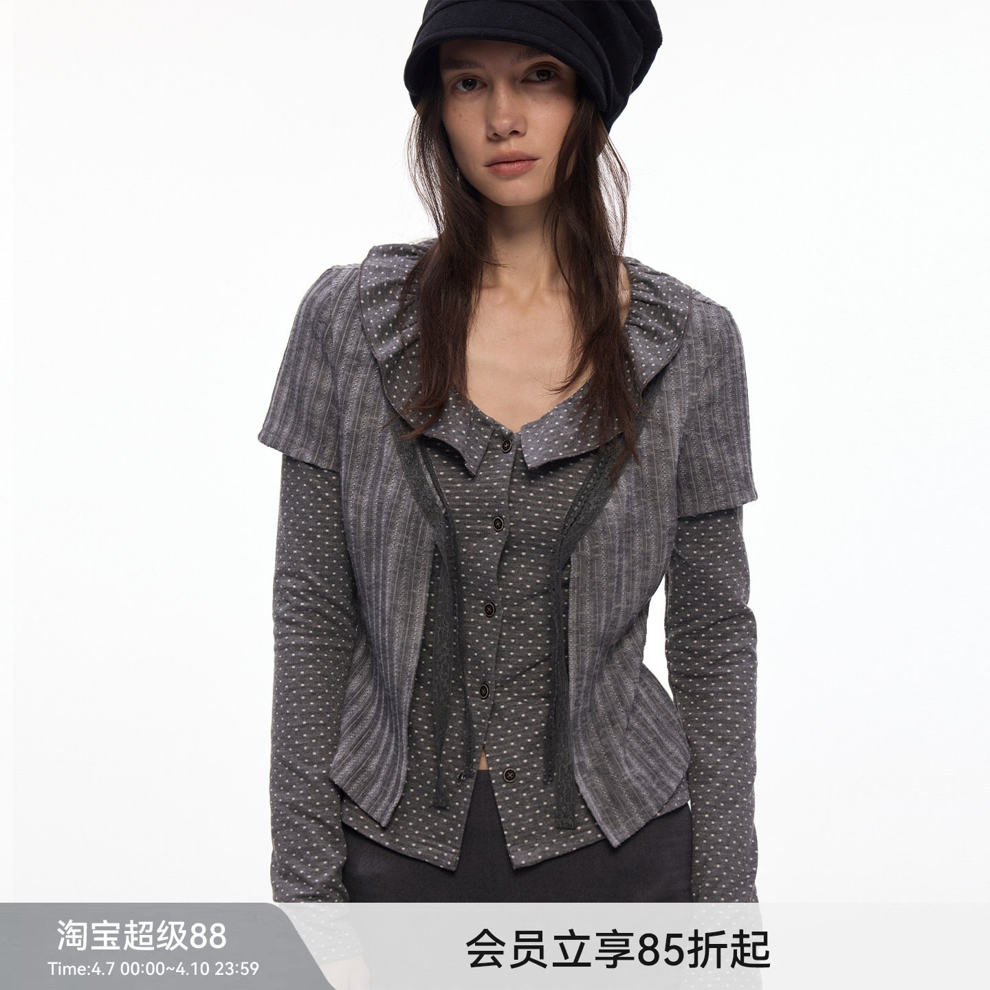 【层叠圆舞曲】BiLLconch波点荷叶拼接扎染上衣修身假两件开衫女