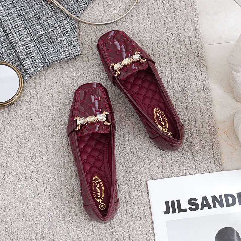 【潘星星】M978-19漆皮钻扣乐福鞋方头舒适软皮软底鞋