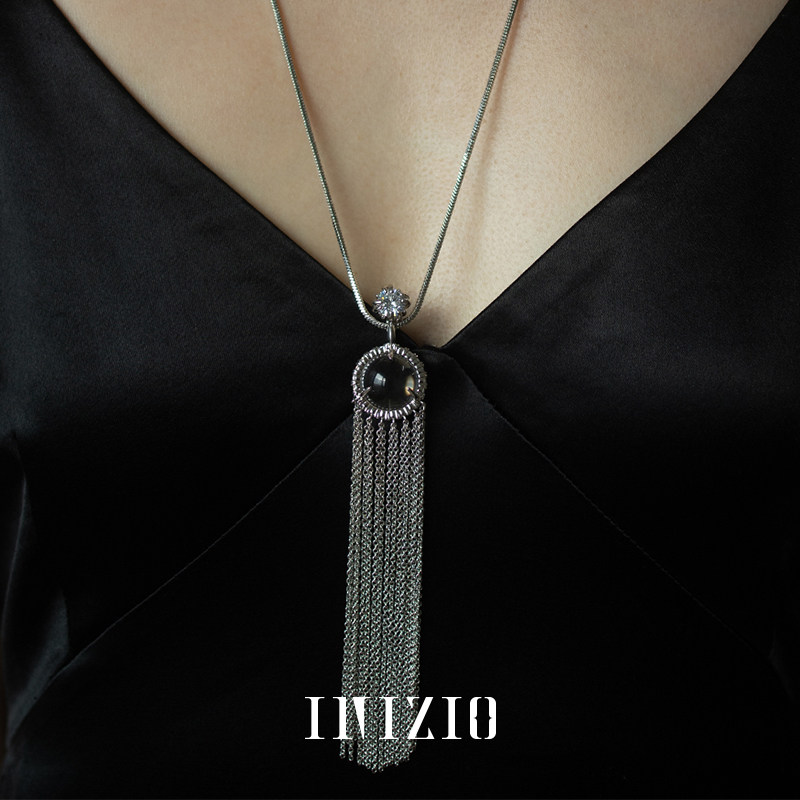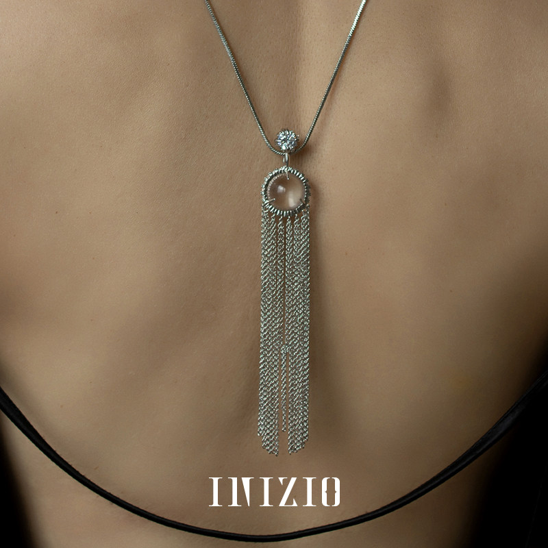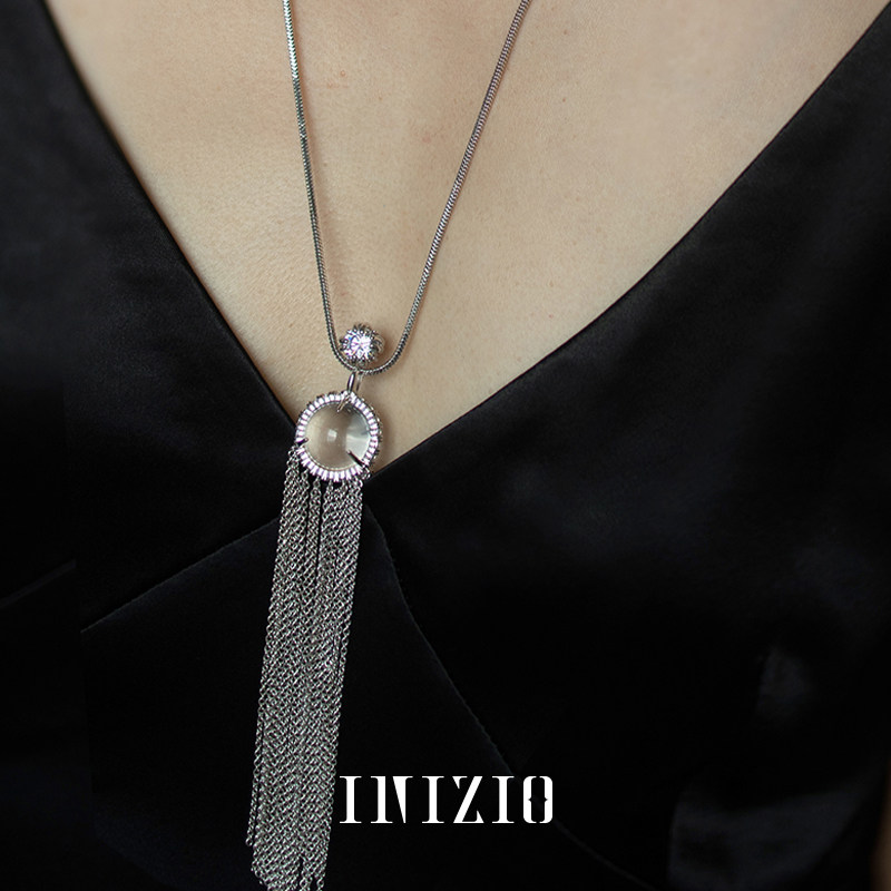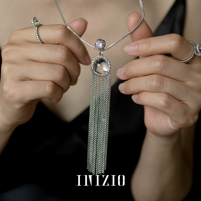 INIZIO 灵光流苏项链 白水晶原创设计厚金电镀小众高级感毛衣链