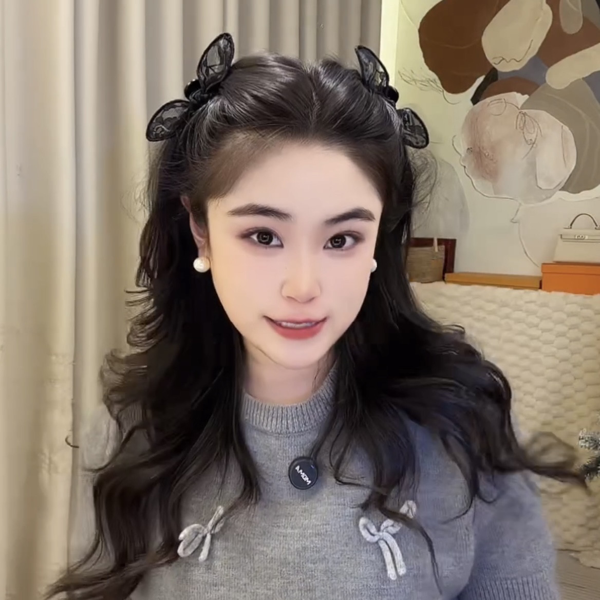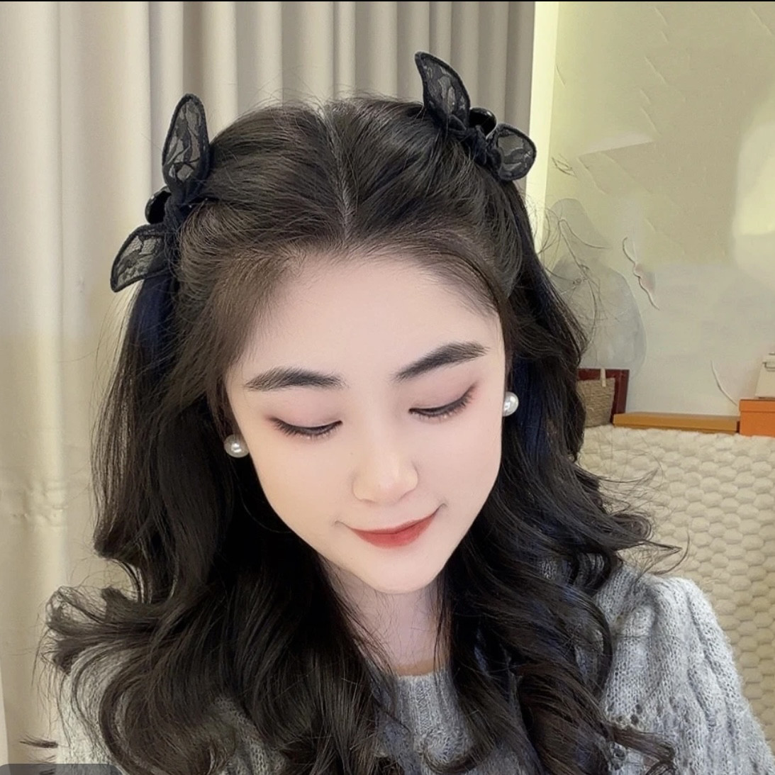 黑色精灵耳后发夹刘海夹侧边夹AB面兔耳朵小抓夹蝴蝶结发夹女头饰