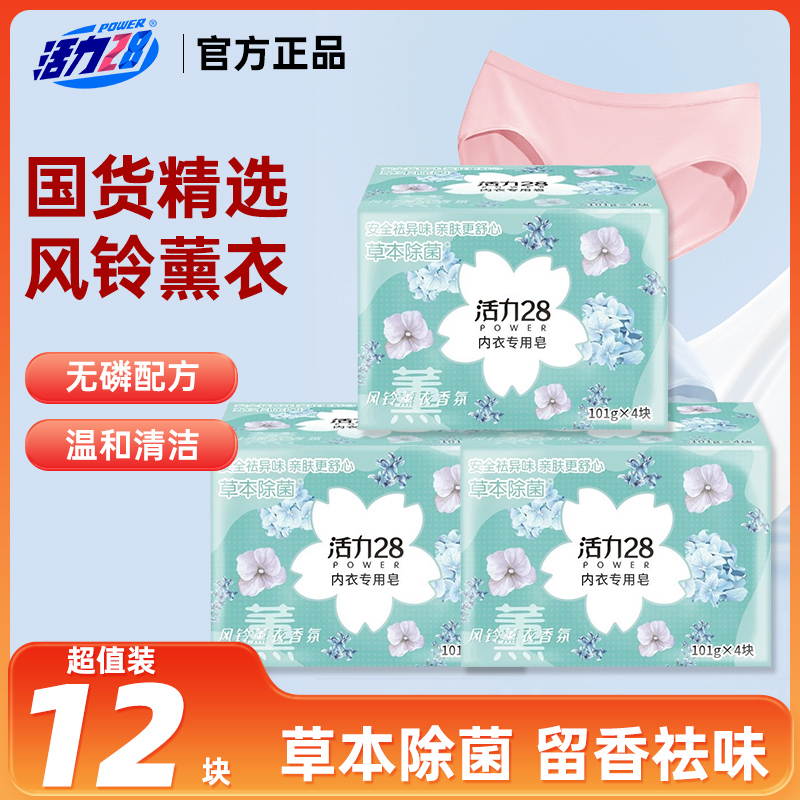 活力28内衣皂女士内裤专用除菌101g*4块洗衣洗内裤肥皂去血渍清香