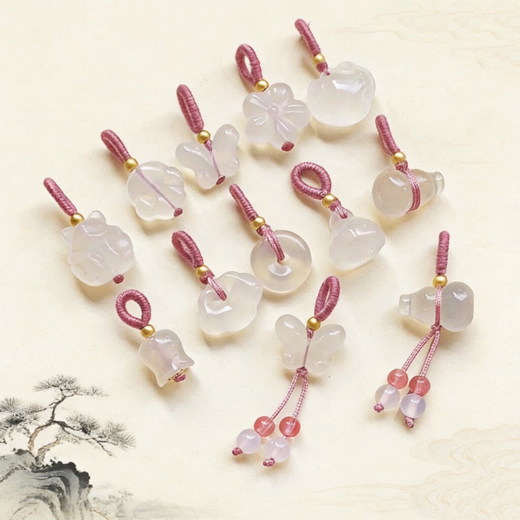 天然玛瑙荔枝冻吊坠饰品DIY小提溜手链项链手机半成品坠如意猫爪