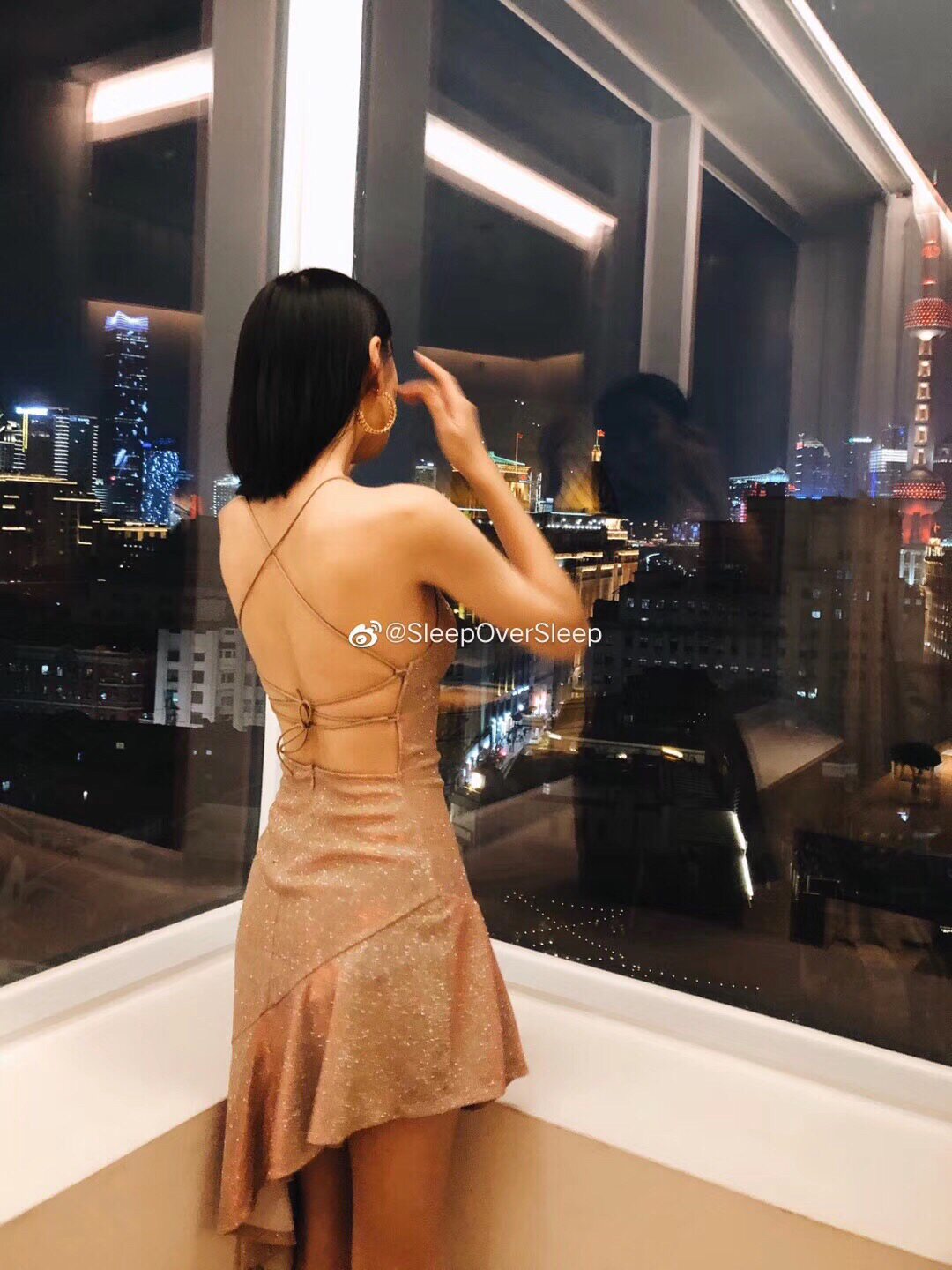 Sleep Over Sleep炫彩系带斜摆连衣裙性感人鱼姬细闪V领吊带裙