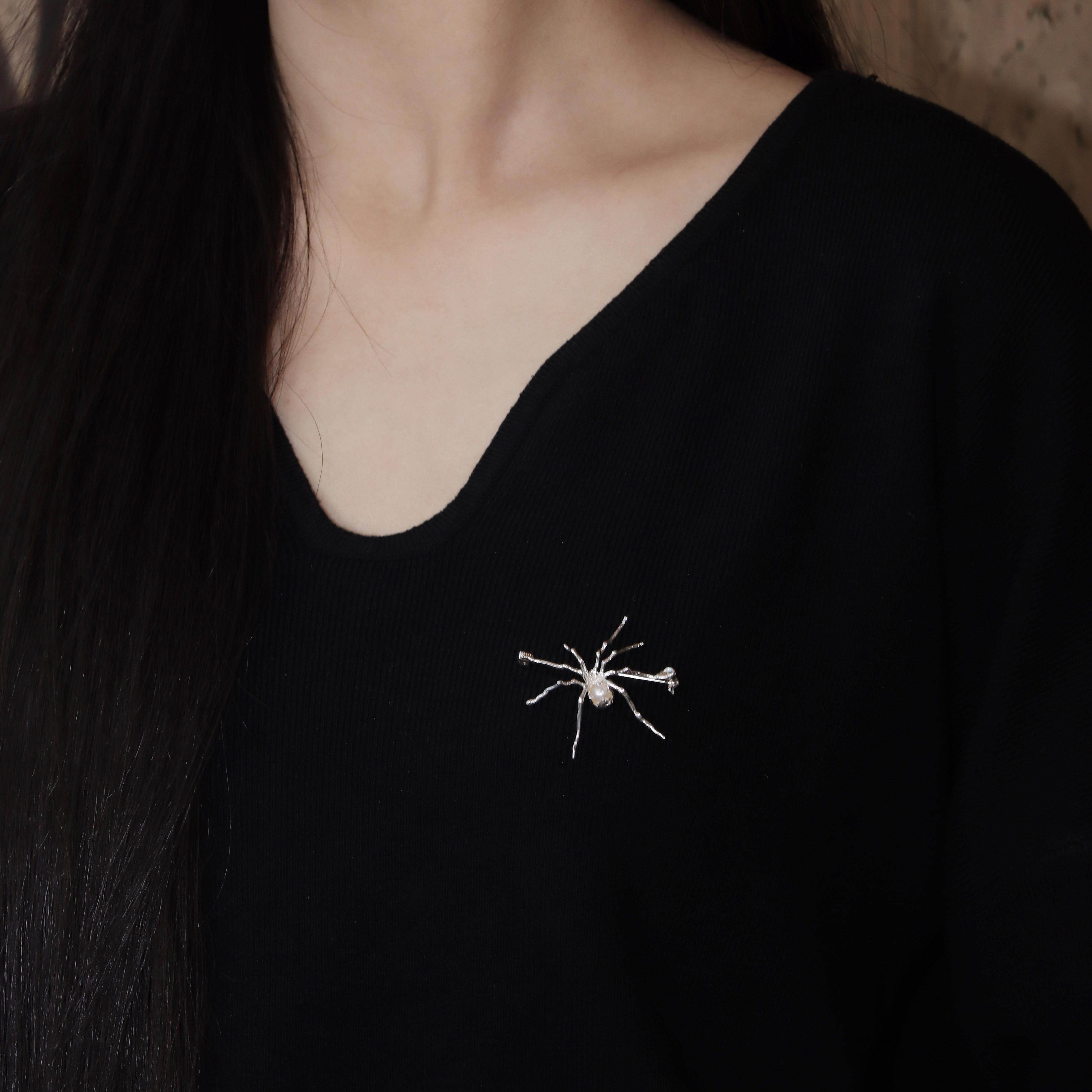 東黑三白/ 白蜘蛛 s930银原创设计感小众百搭珍珠简约胸针礼物
