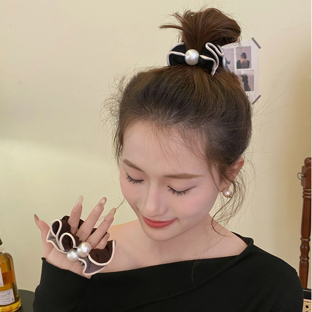 秋冬木耳边珍珠小肠发圈2025新款高级感丸子头扎头发大肠头绳女