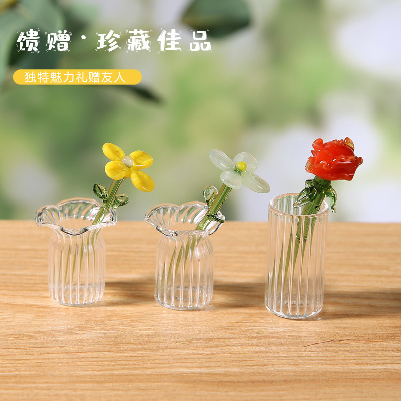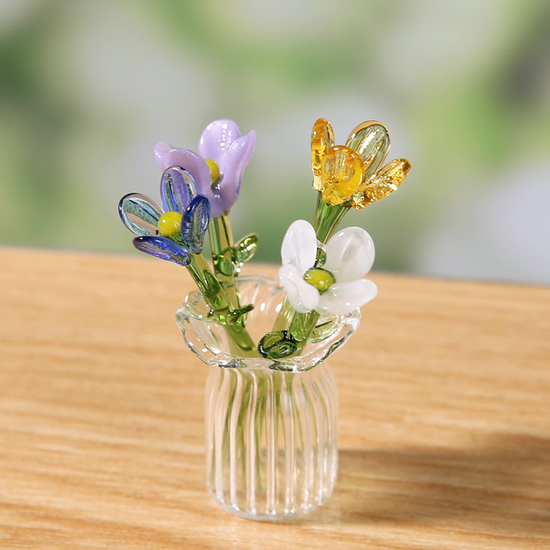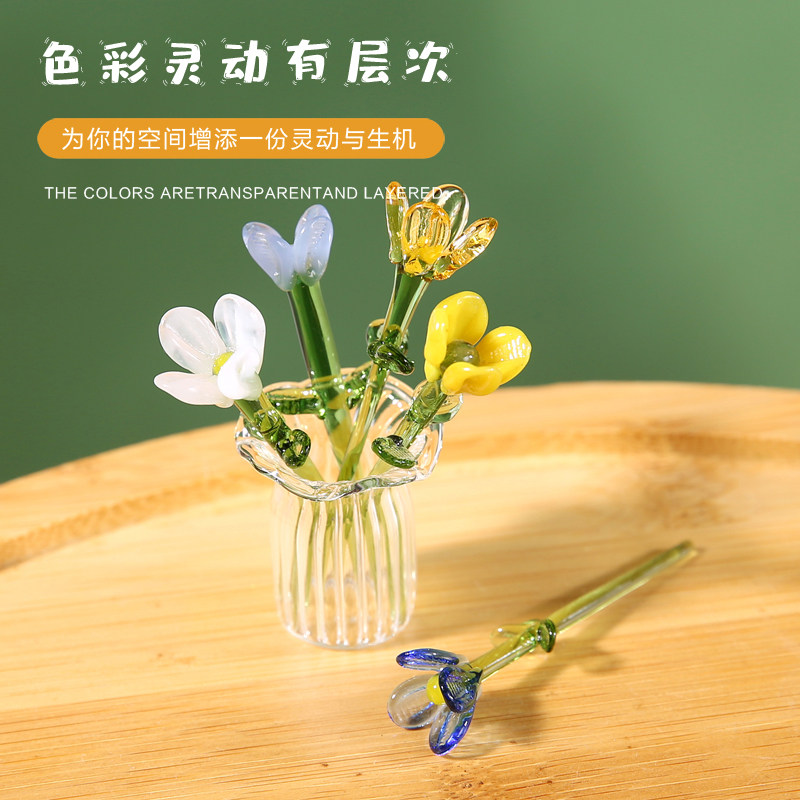 手工琉璃彩色花朵仿真花永生花摆件创意礼物办公室桌面装饰品小花