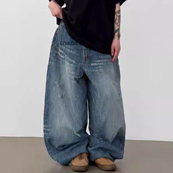 韩国代购26A/W damage denim balloon banding pants破洞牛仔裤