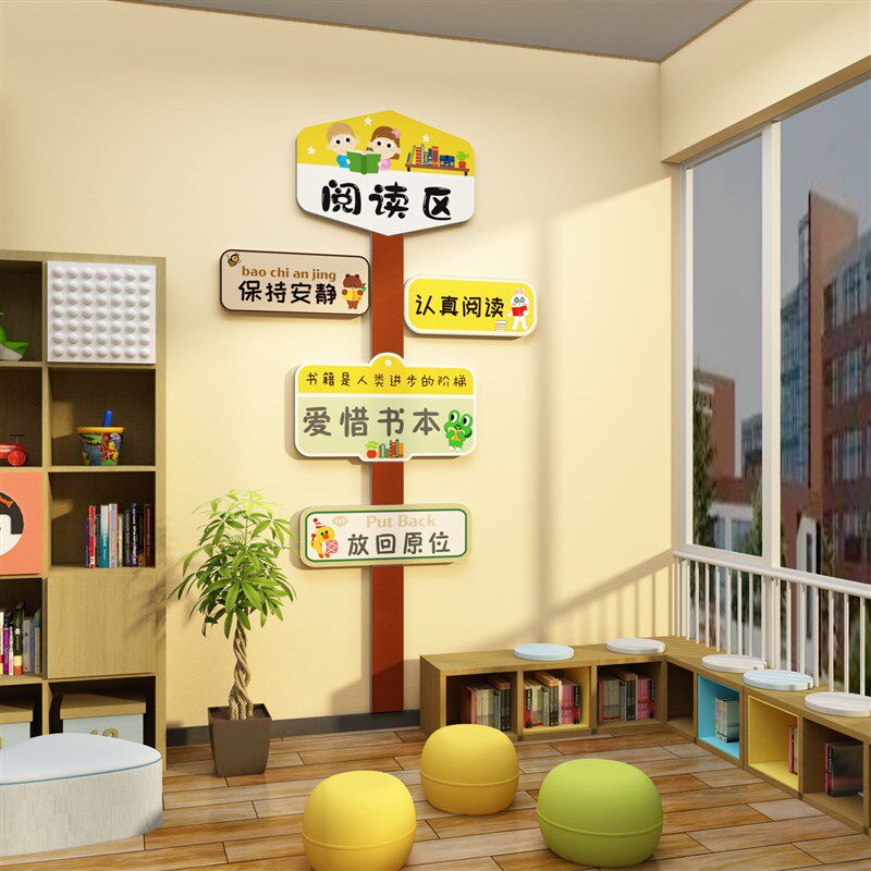 儿童图书角布置装饰画阅读区绘本馆阅览室幼儿园环创背景文化墙贴