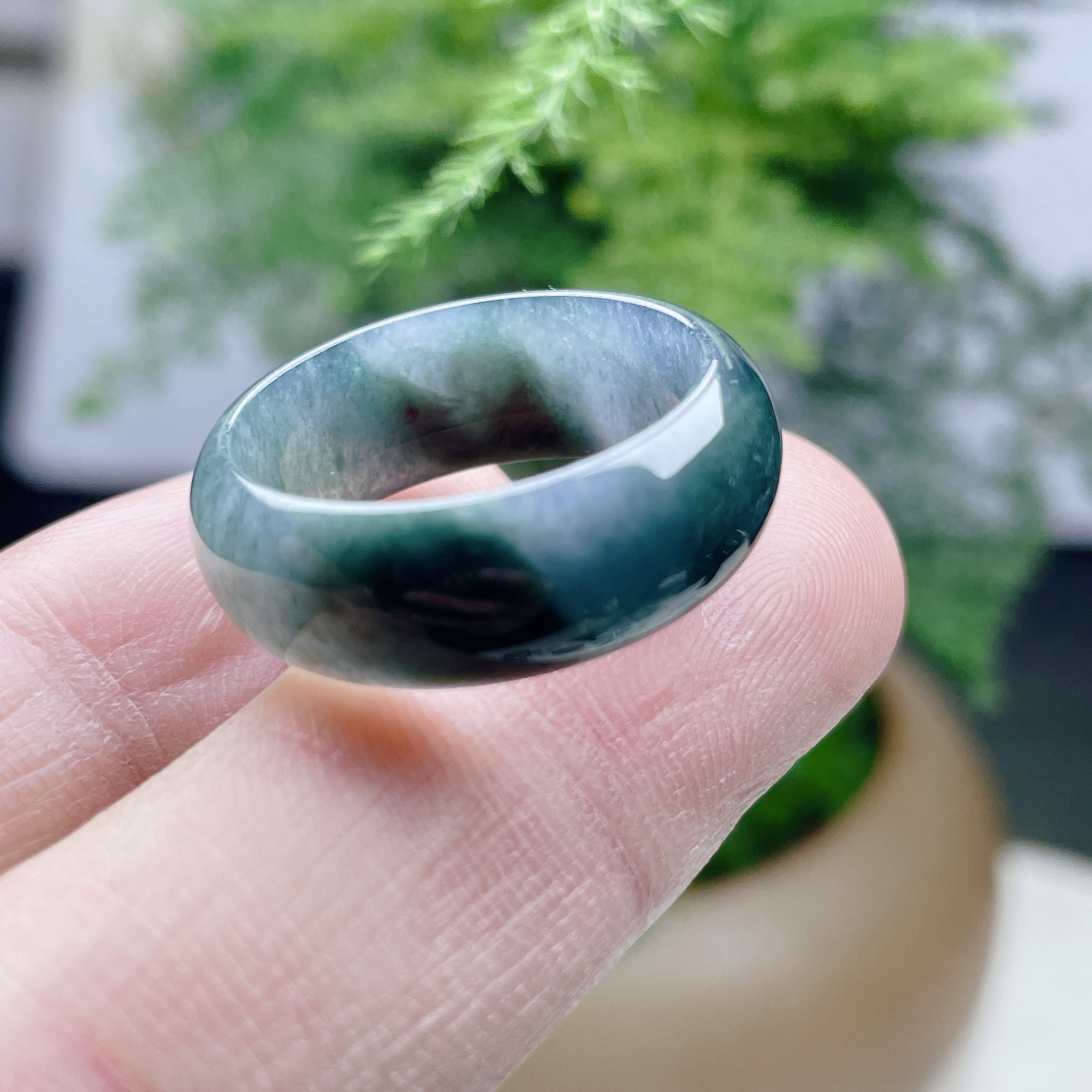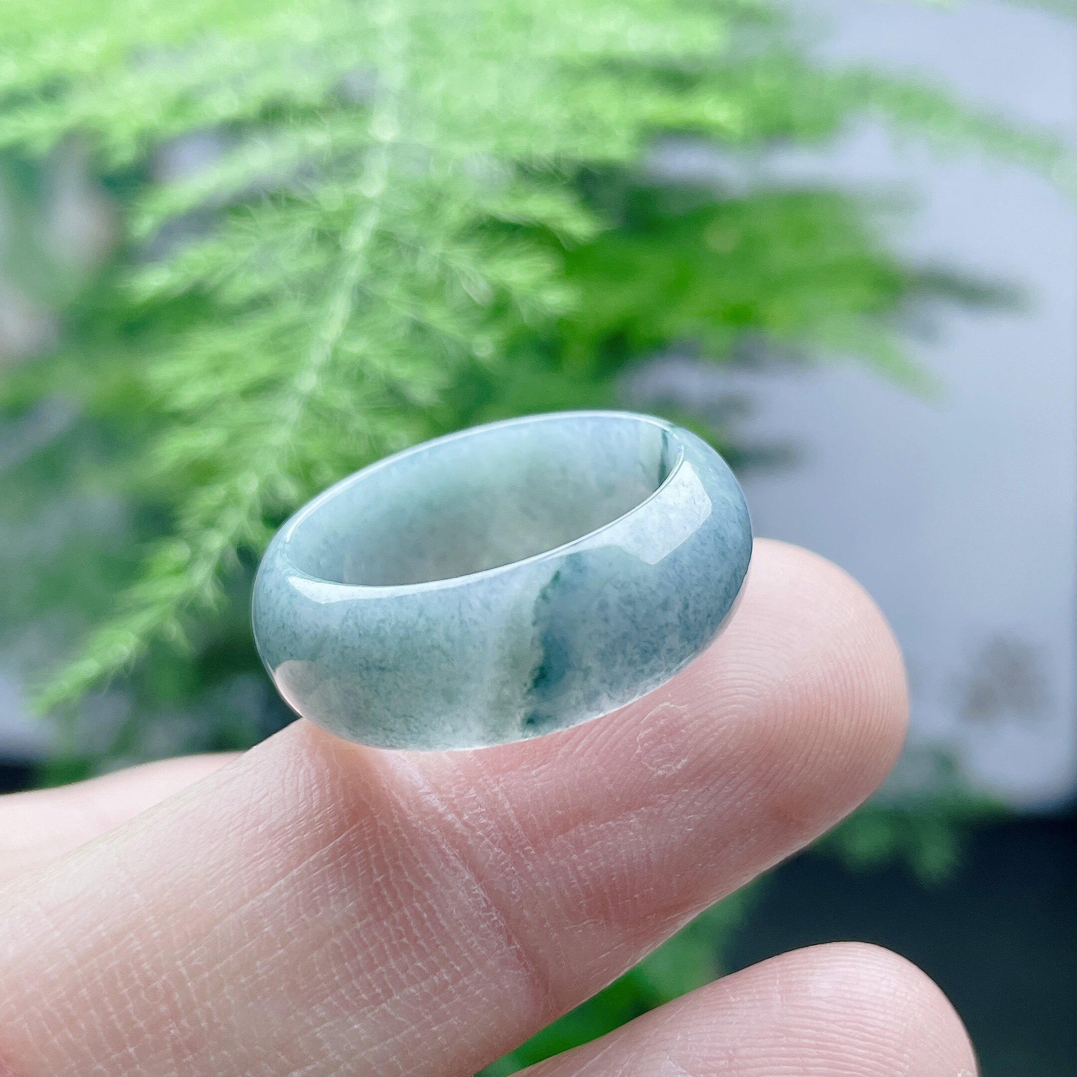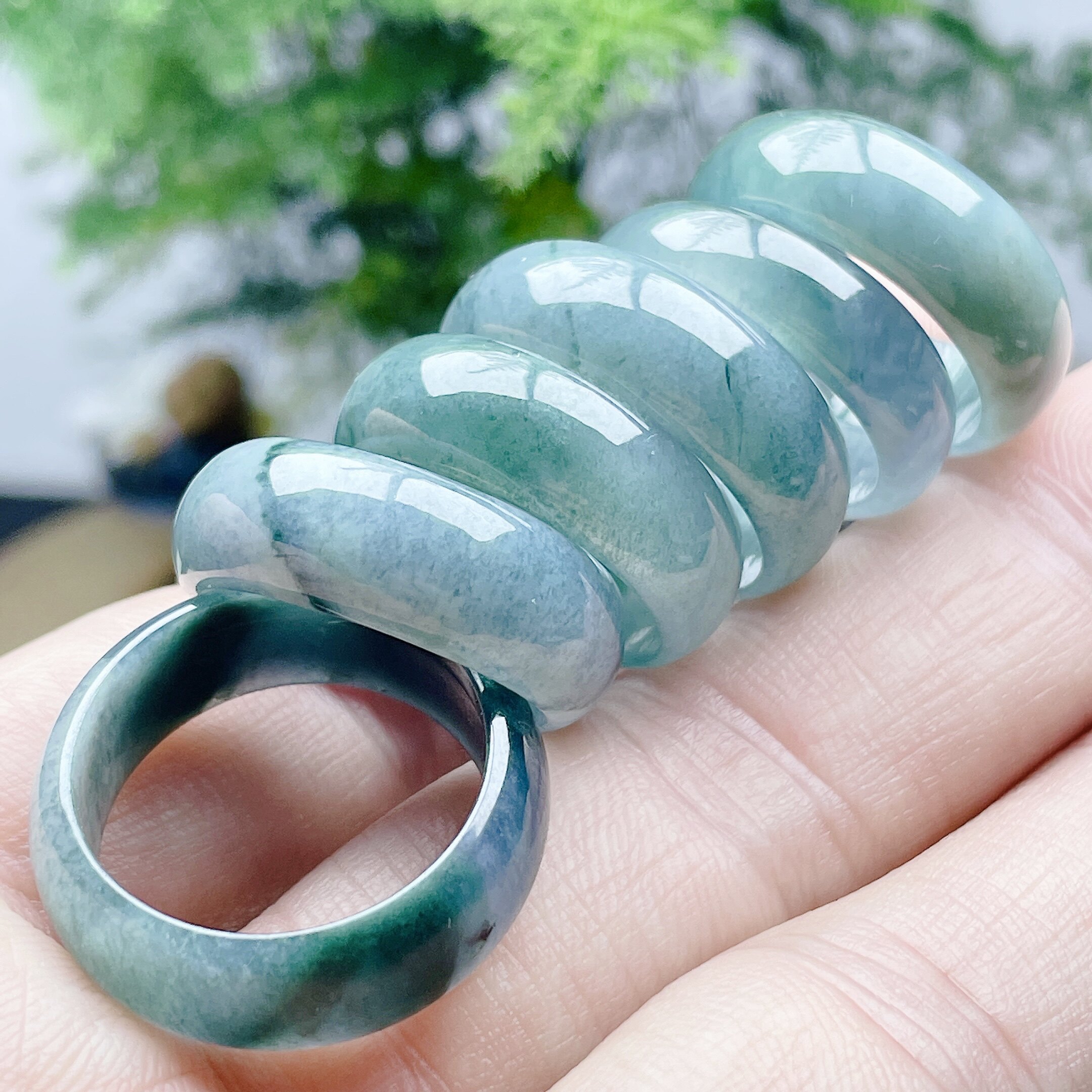 天然A货老坑飘花冰蓝水翡翠轮胎戒指晴绿宽版圆边指环飘雪花戒圈