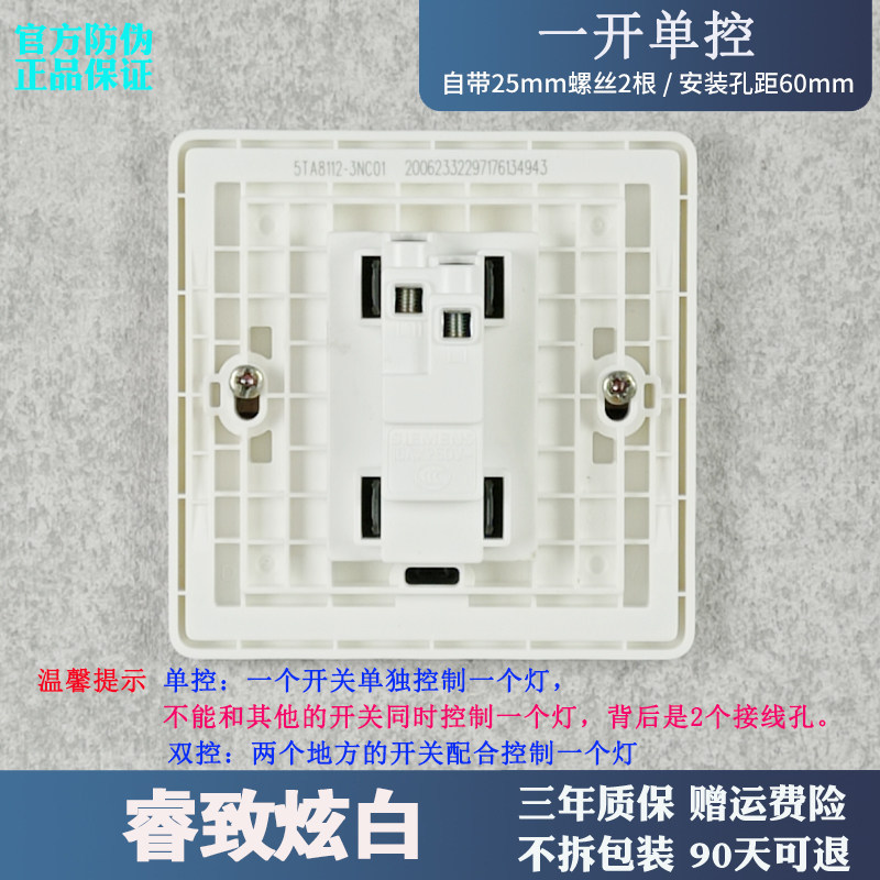 西门子睿致象牙炫白色开关插座面板单联一开单控单开单联开关86型