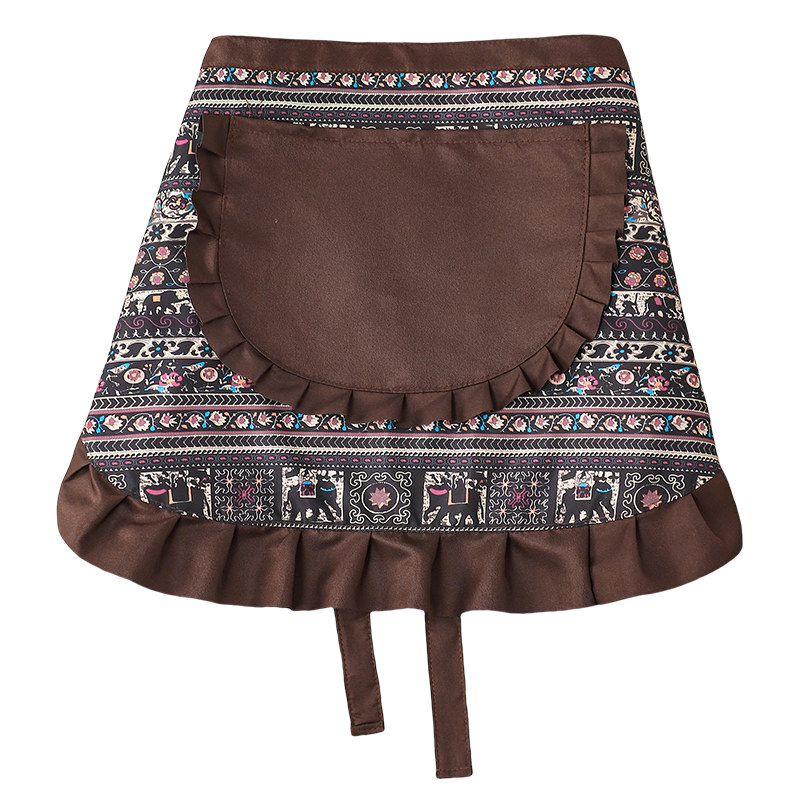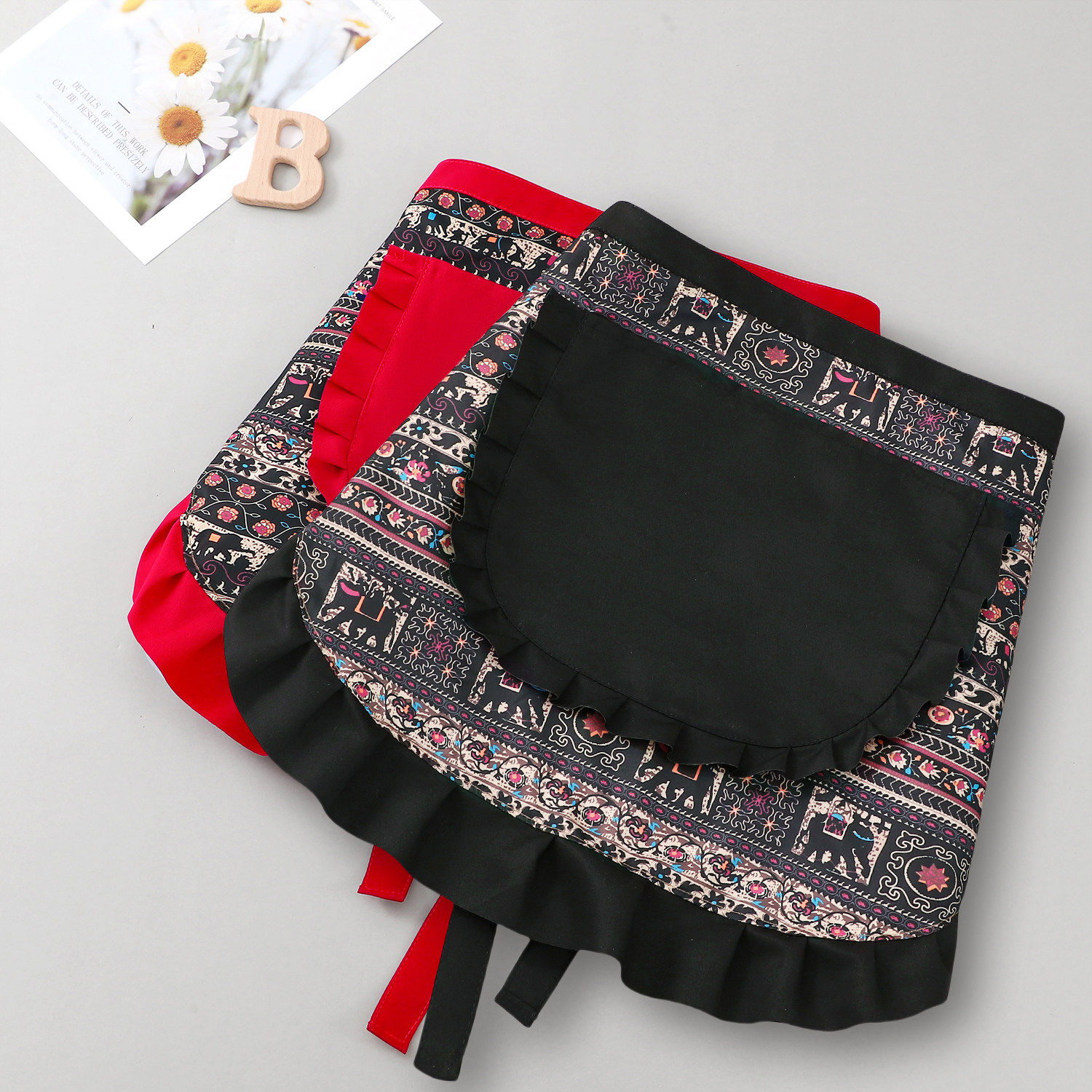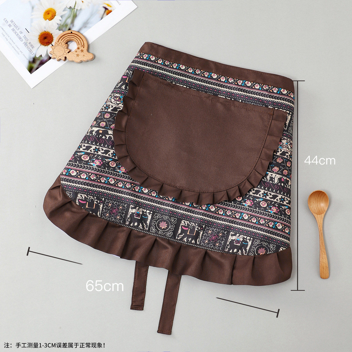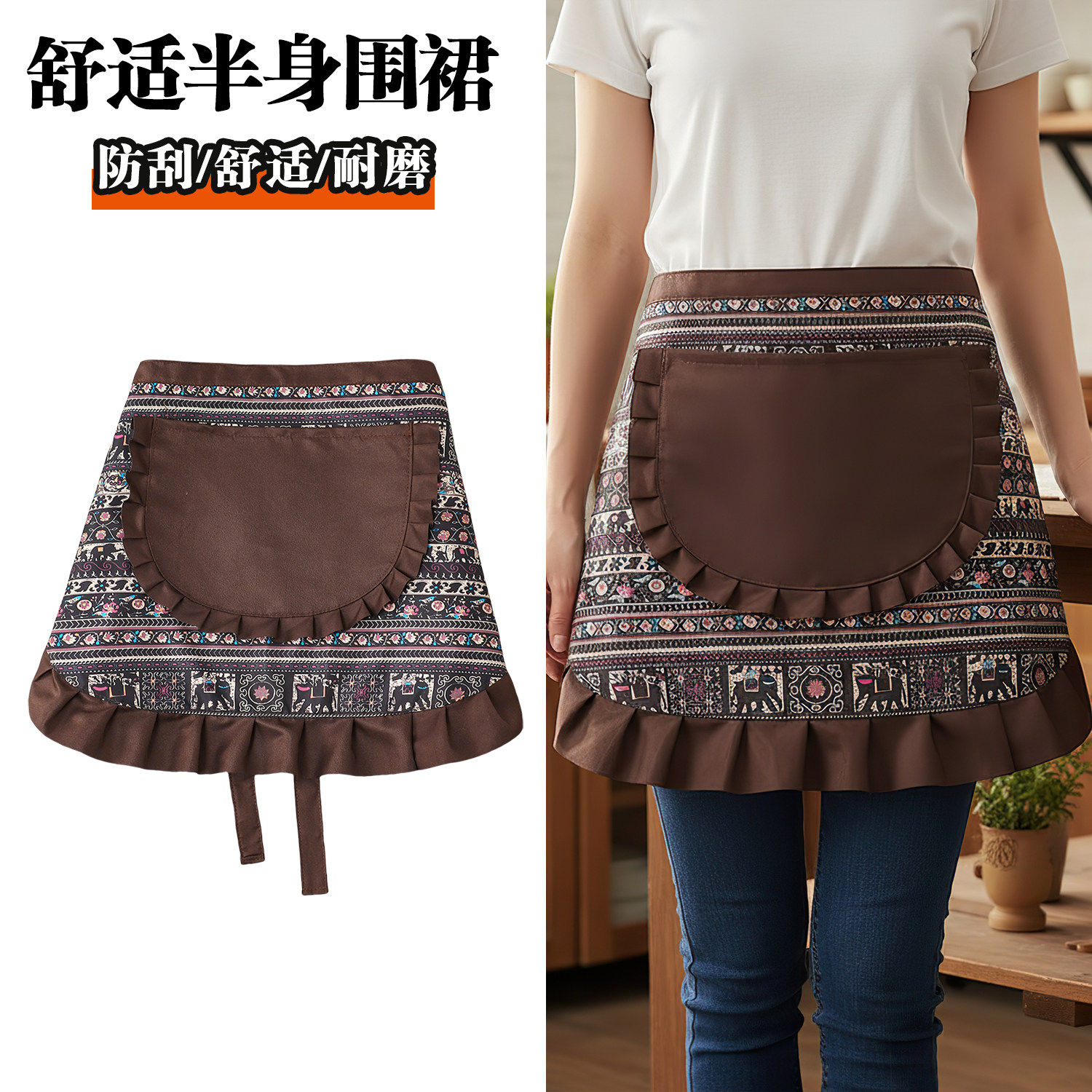 复古民族风半身围裙厨房家用2026新款耐磨工作服女服务员餐饮专用