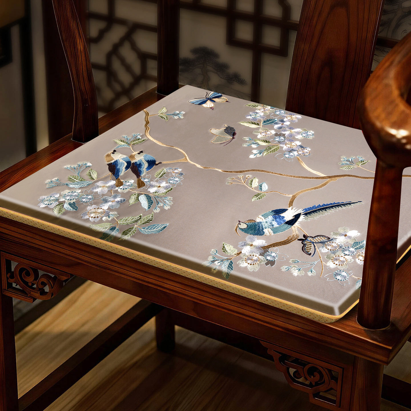 新中式红木椅子坐垫实木沙发垫圈椅太师椅餐椅座垫茶凳子垫定制