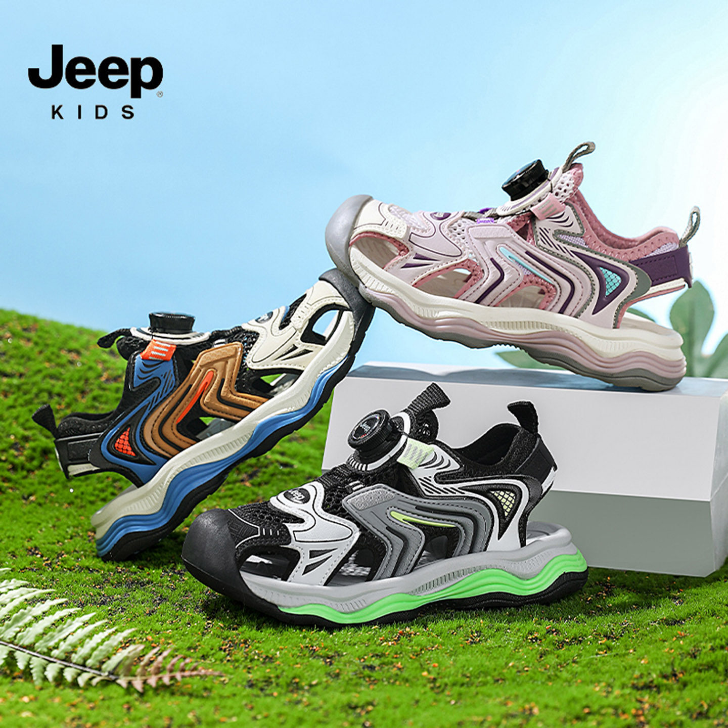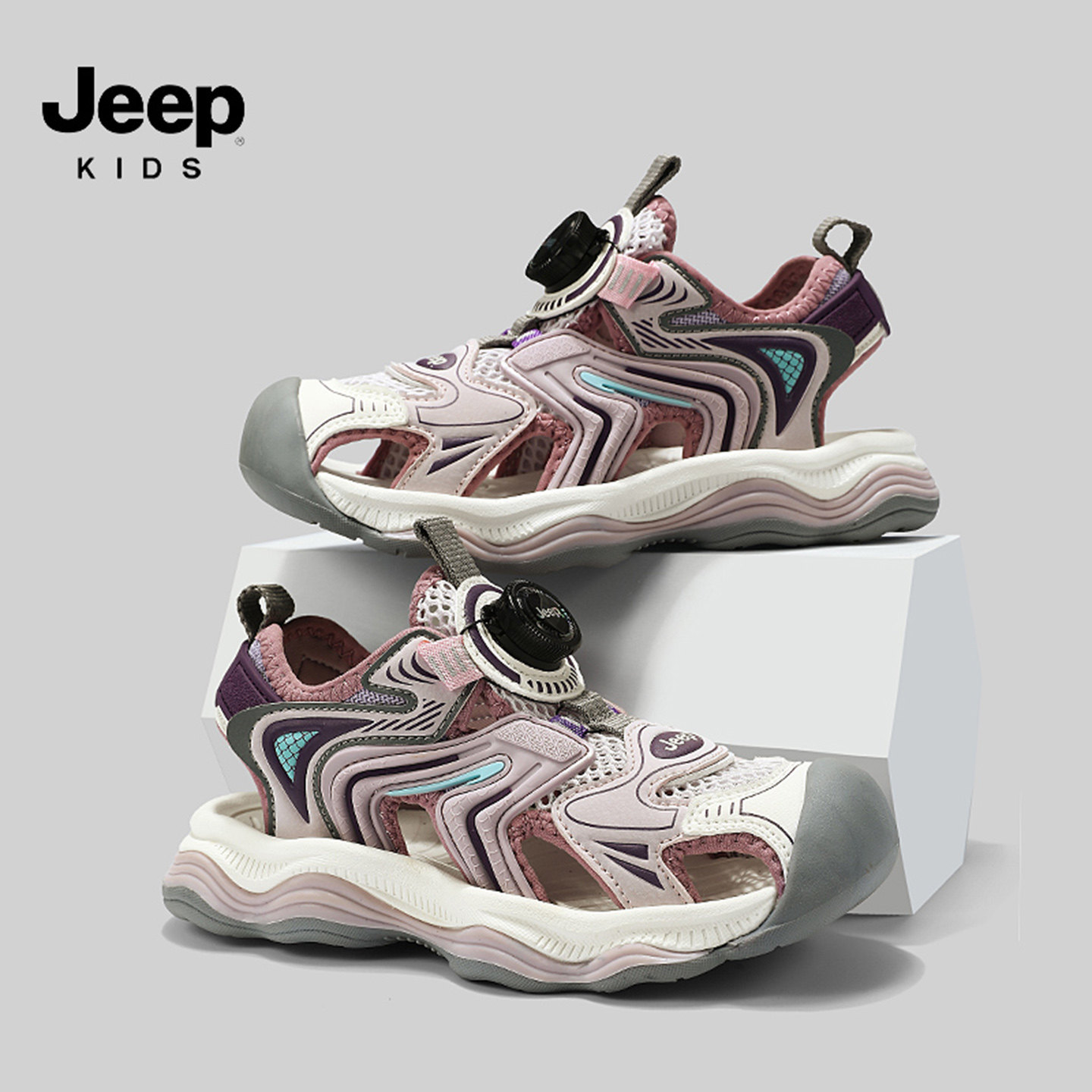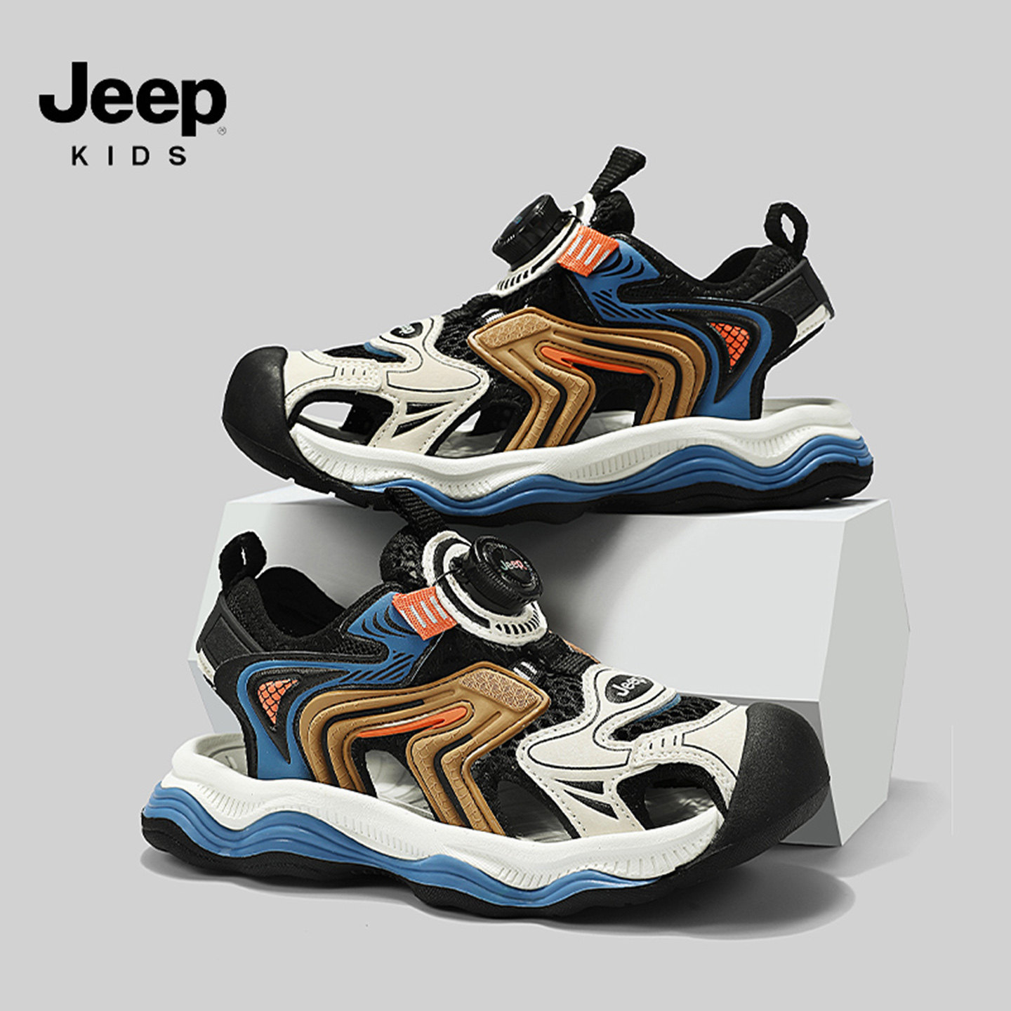 jeep女童鞋2026夏季包头儿童沙滩鞋软底防滑户外迷彩男童百搭凉鞋