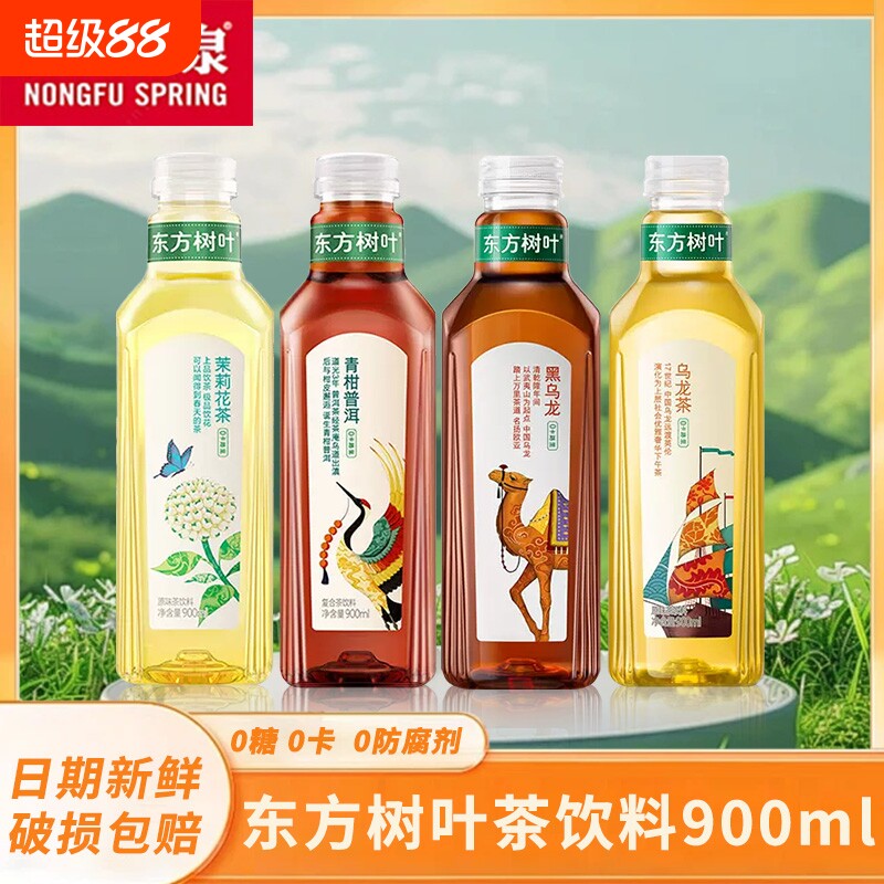 东方树叶900m/500ml大瓶装青柑普洱茉莉花茶乌龙无糖茶饮料