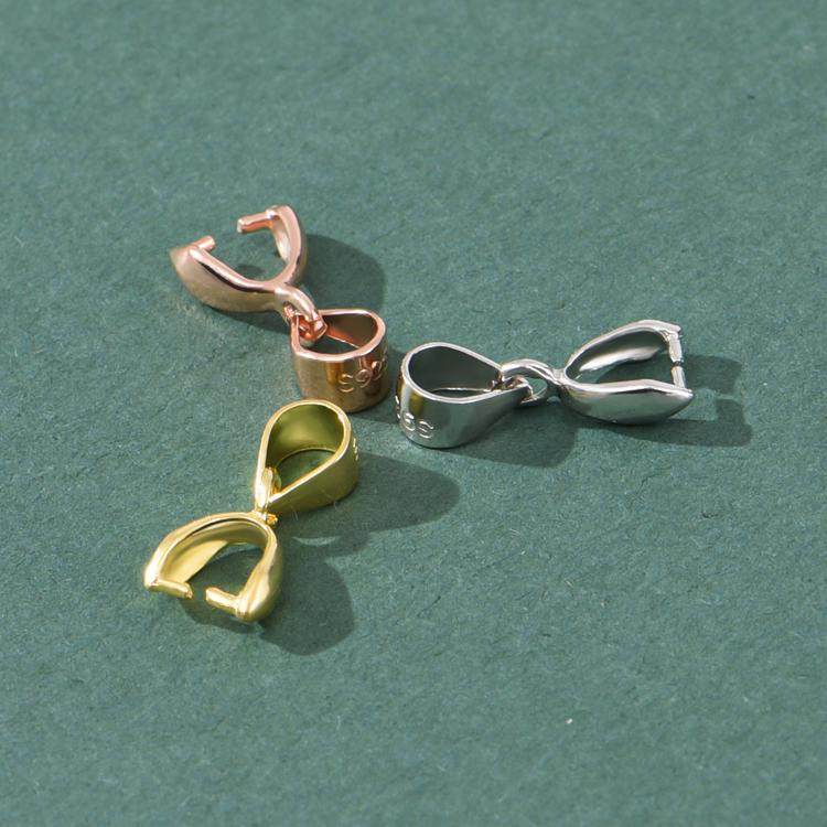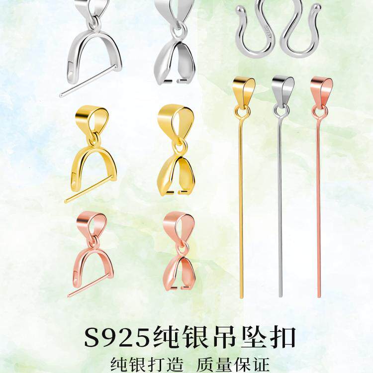 纯银吊坠扣925瓜子扣夹扣DIY项链配件卡扣翡翠玉佩扣头金色玫瑰金