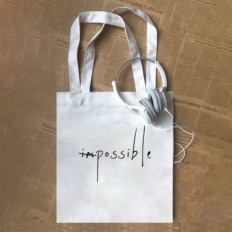 Possible impossible 把不可能变可能创意文字简跃男女帆布包