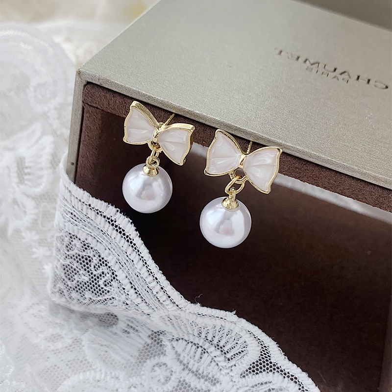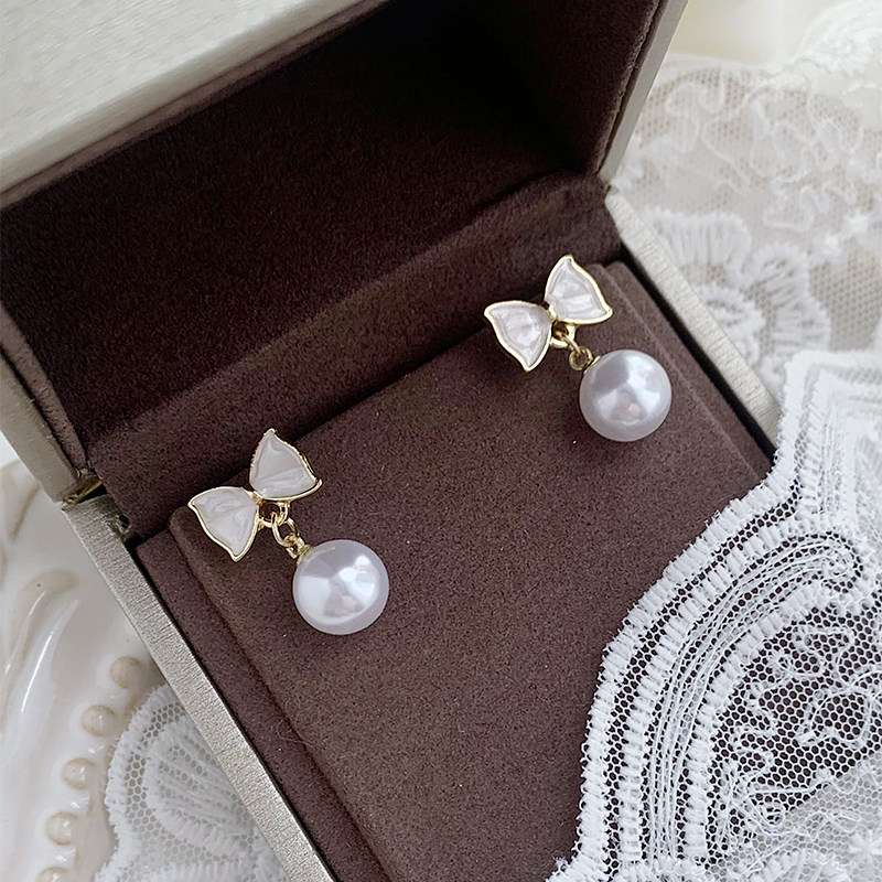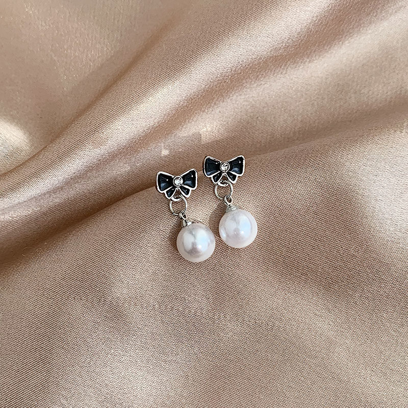 蝴蝶结珍珠耳钉气质高级感耳环新款2023爆款轻奢精致小众设计耳夹