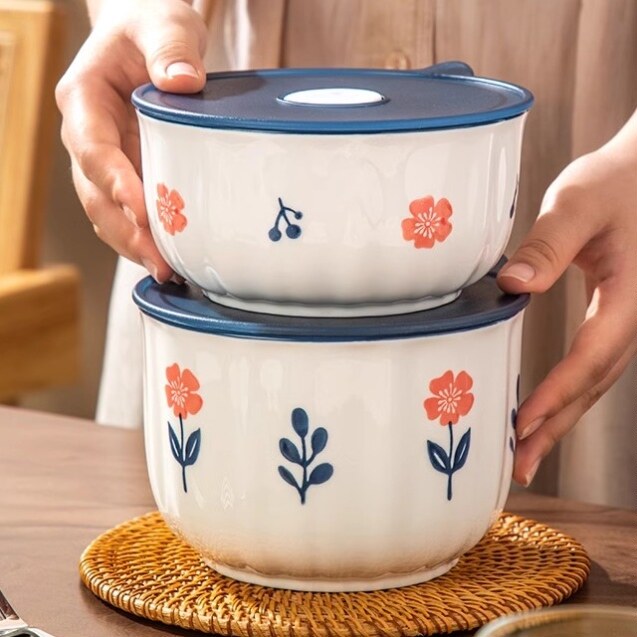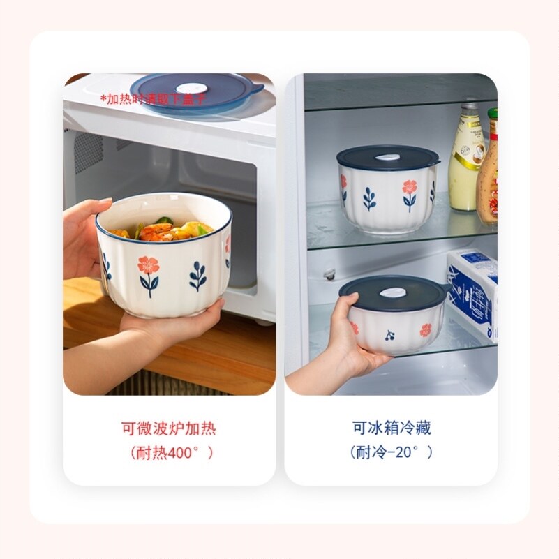 当盒沙拉碗小清新陶瓷保鲜碗饭盒上班族微波炉带盖密封学生专用便