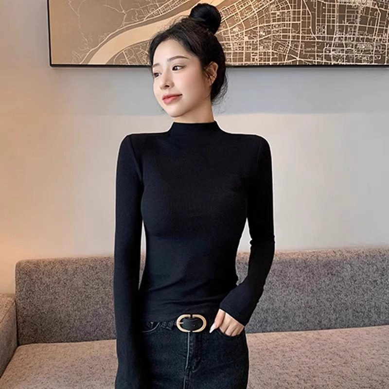 拉夏贝尔半高领打底衫女内搭2026春秋冬新款加厚保暖长袖针织上衣