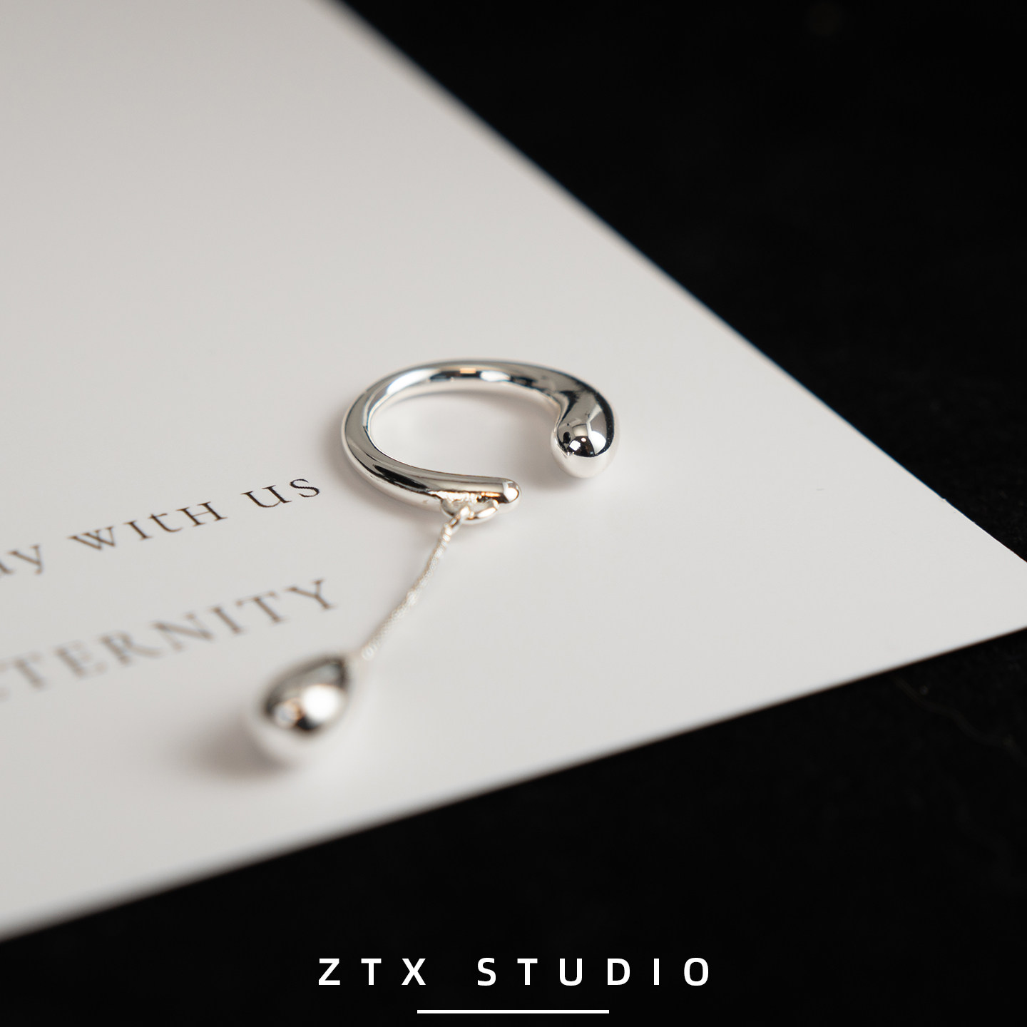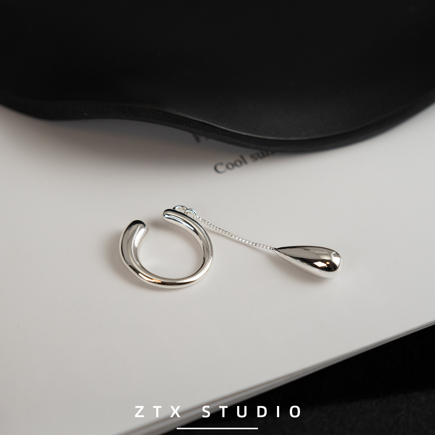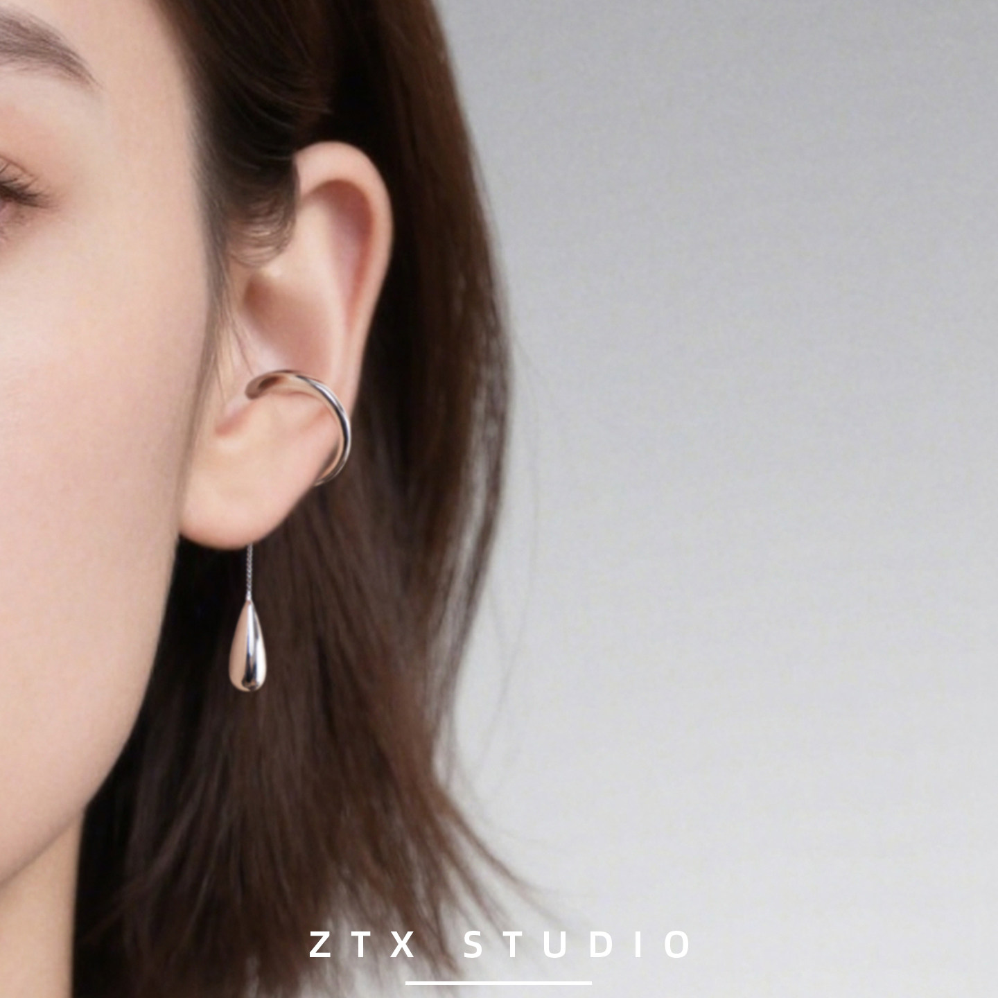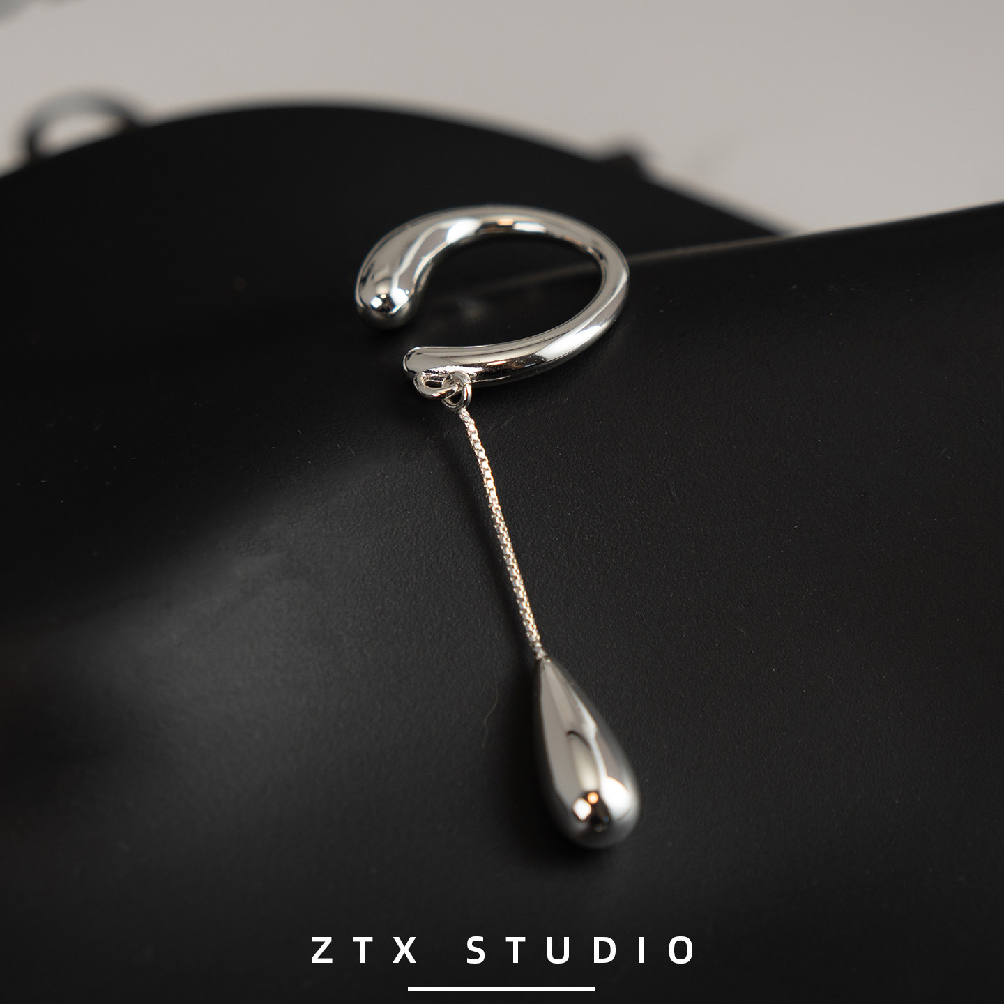 ZTX 极简水滴流苏耳骨夹小众独特银色无耳洞耳饰日常百搭气质耳夹