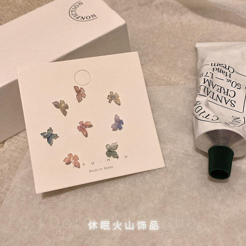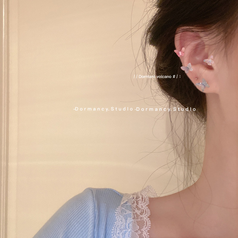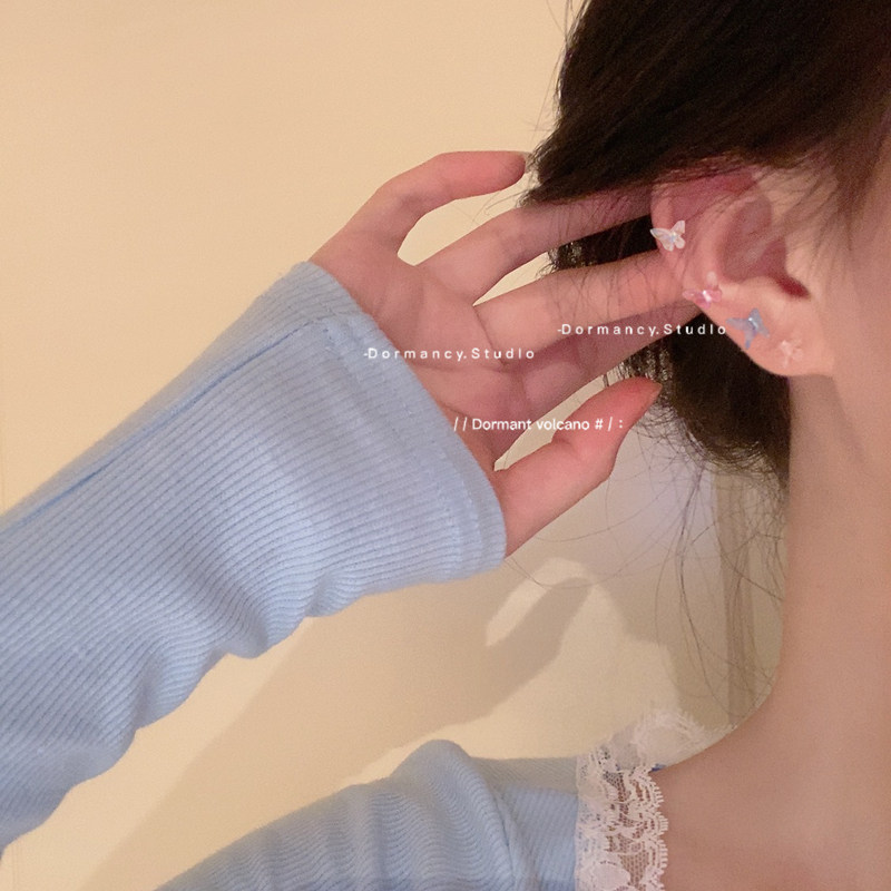 休眠火山◆彩色蝴蝶耳钉耳环小众设计感高级新款耳饰二骨钉耳夹女