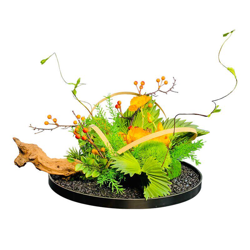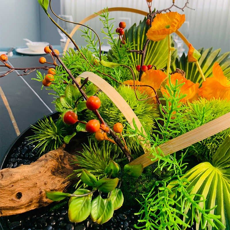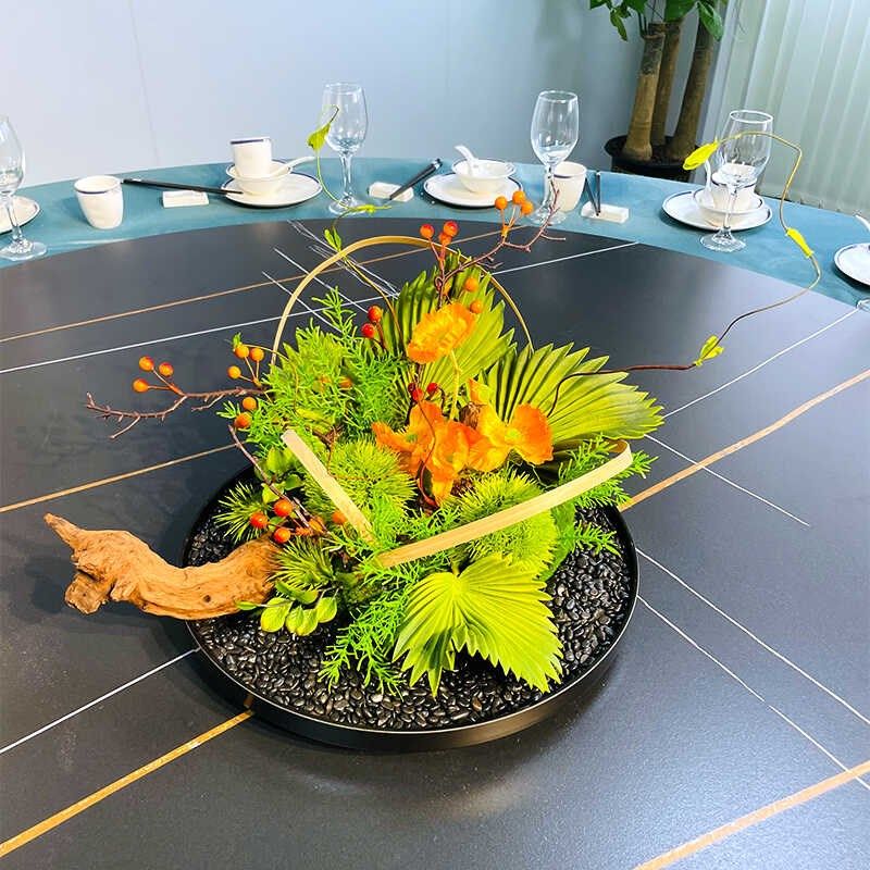 酒店餐桌花摆盘装饰花草餐厅桌面创意摆件包间大圆桌转盘仿真假花